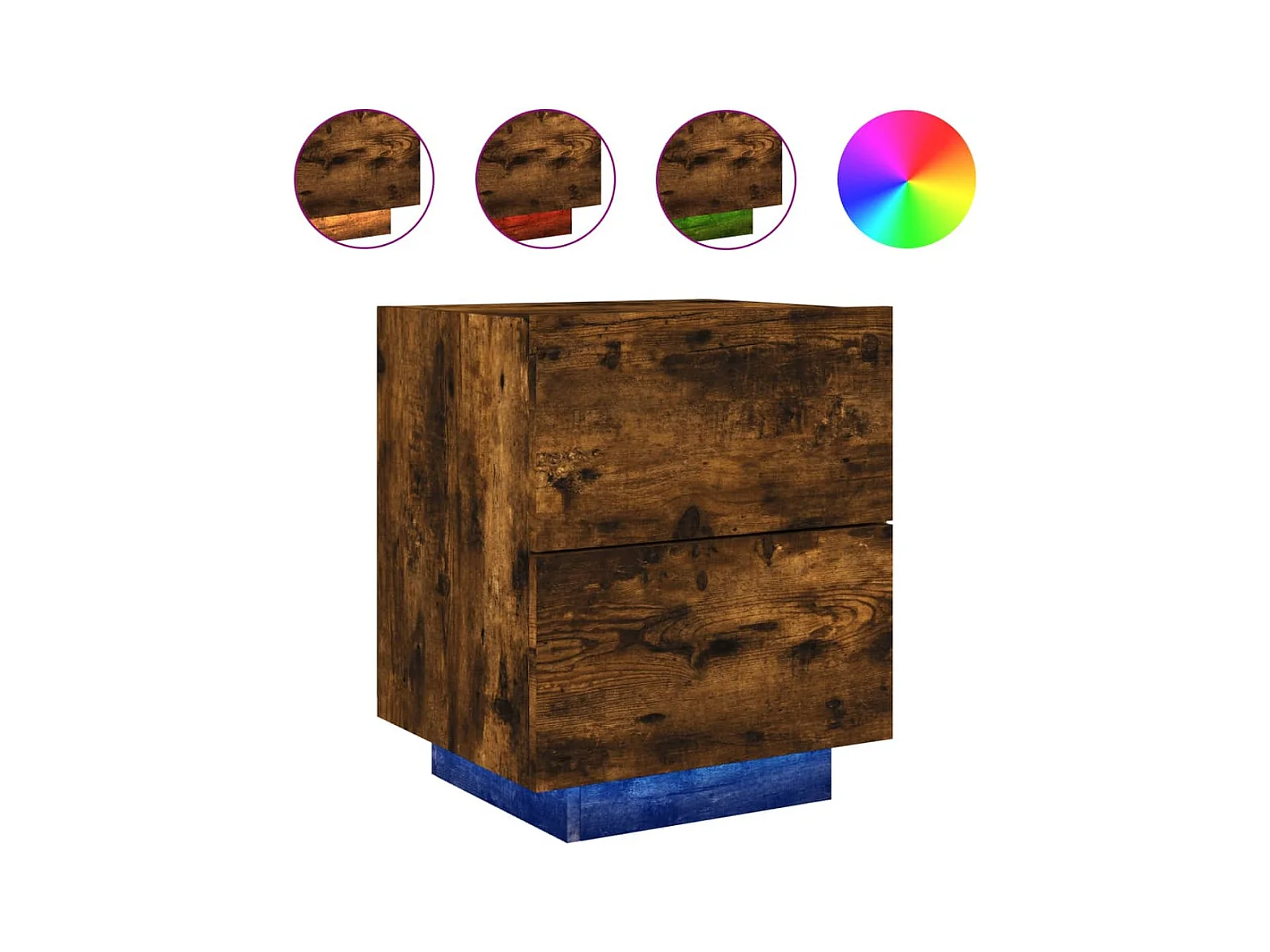 Armoire de chevet et lumières LED chêne marron bois ingénierie