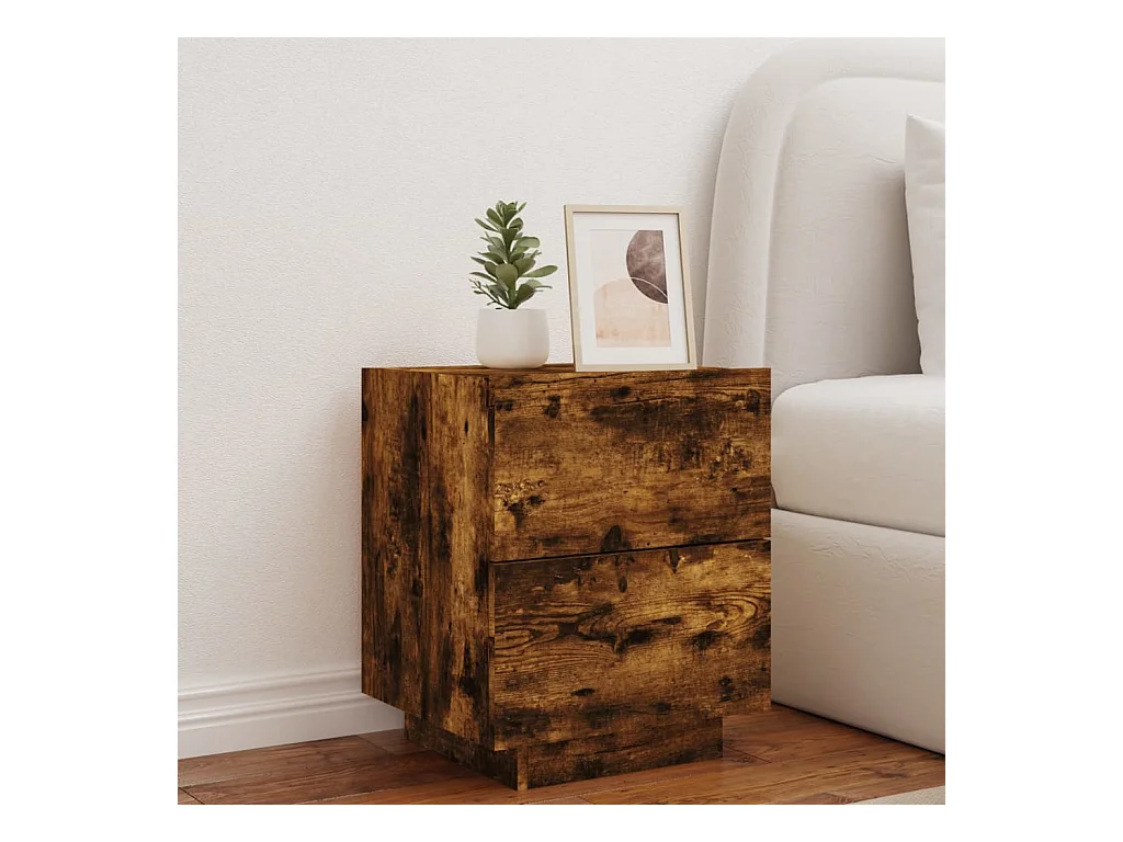 Table de chevet et lumières LED chêne fumé bois d'ingénierie FR58961
