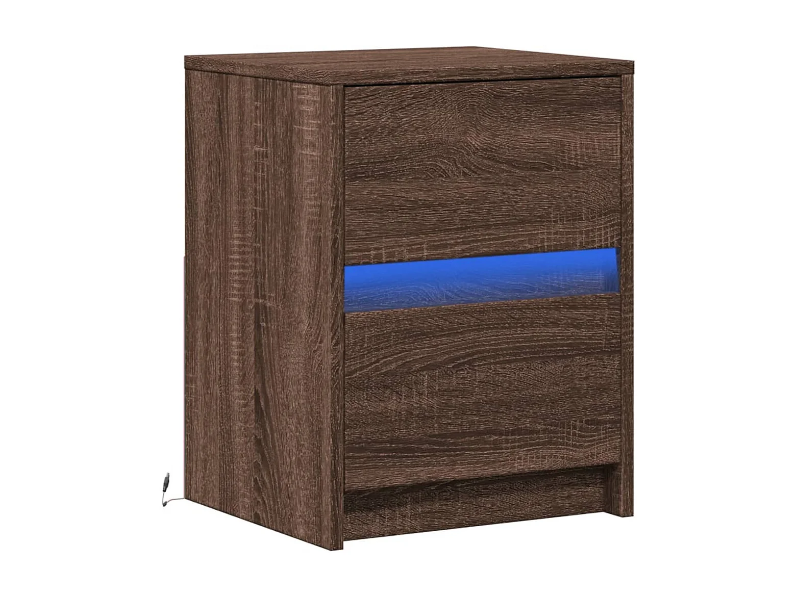 Table de chevet et lumières LED chêne marron bois ingénierie