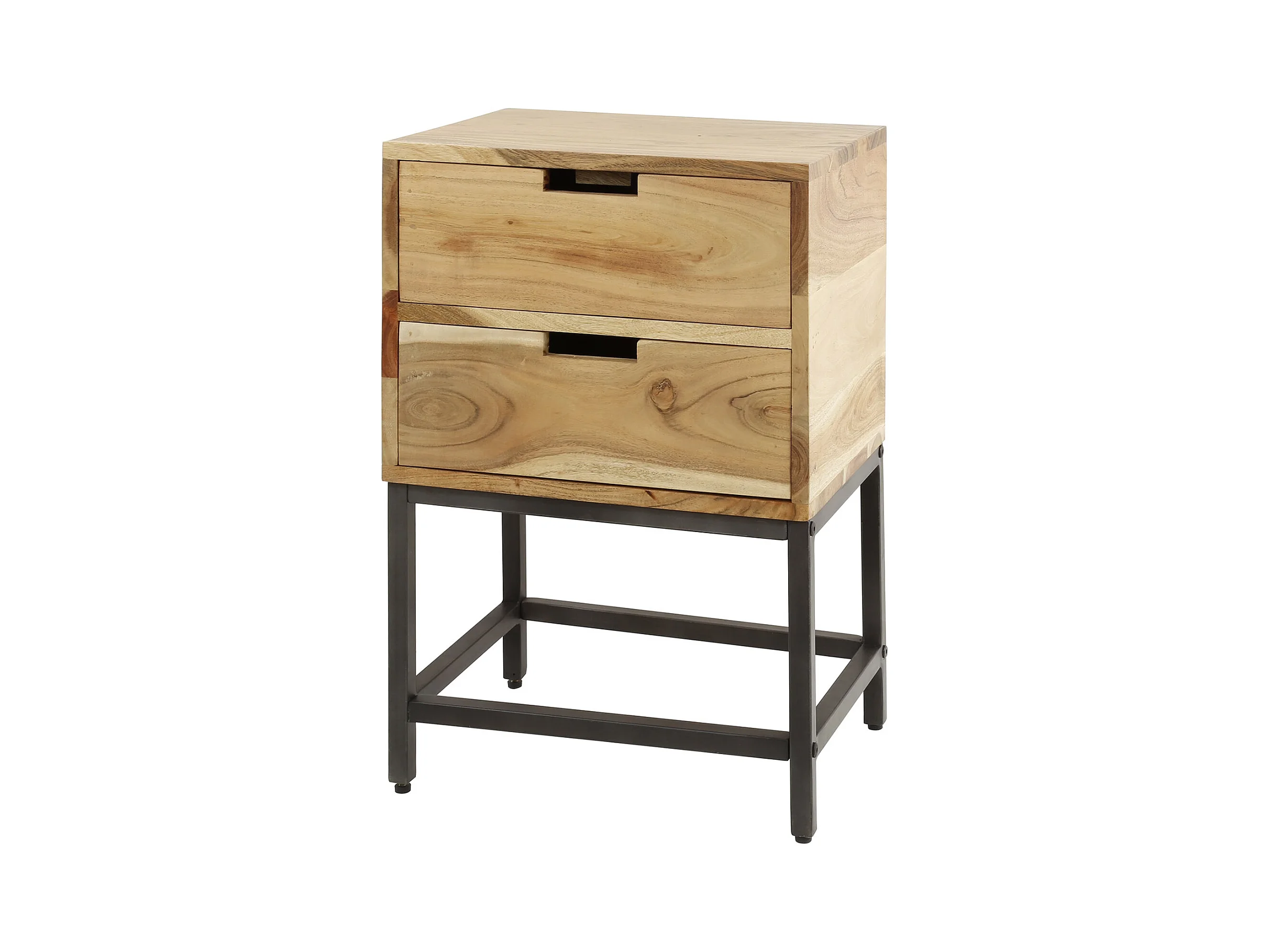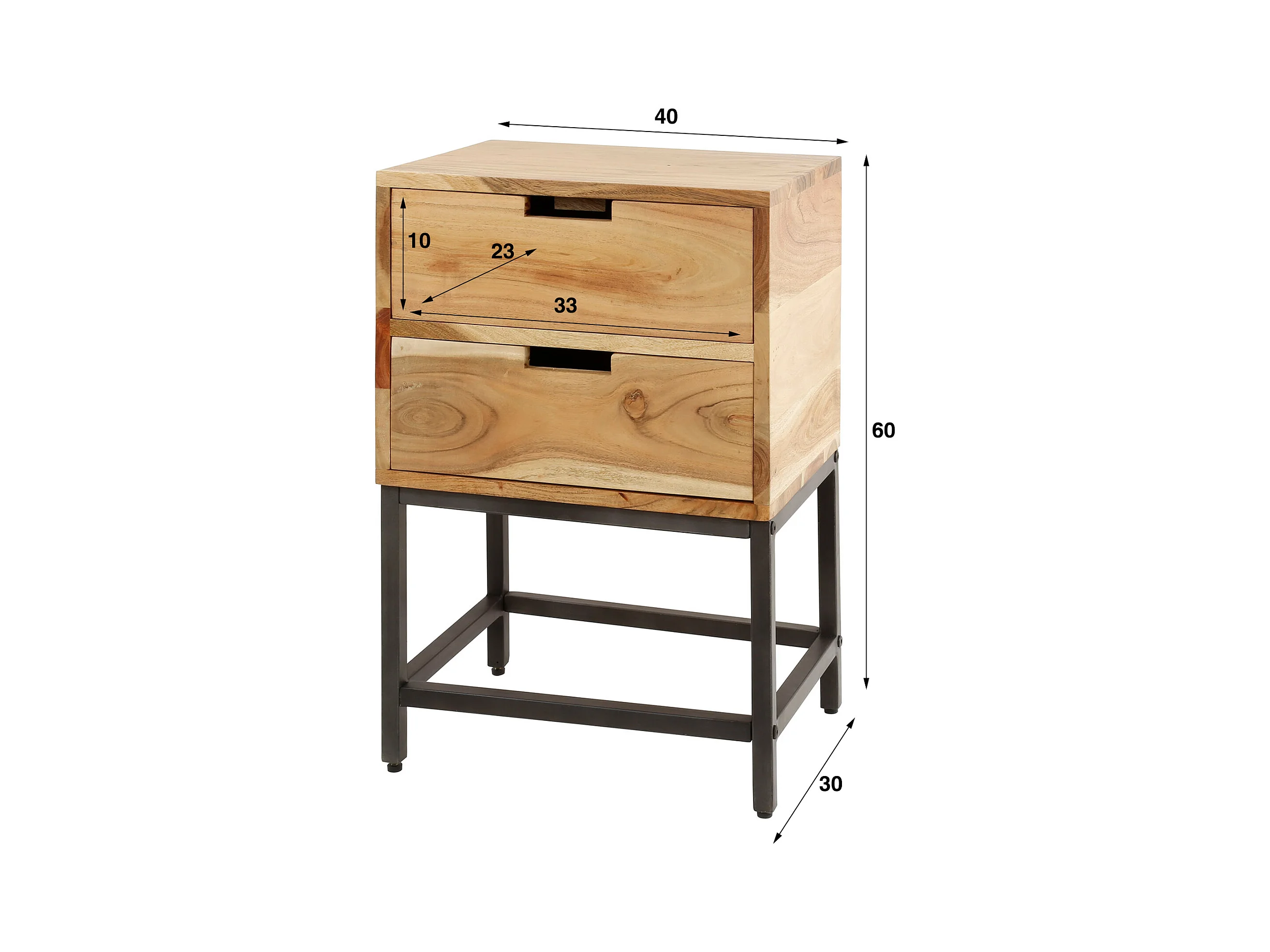 Table de chevet Flat - 2 tiroirs - Bois d'acacia massif