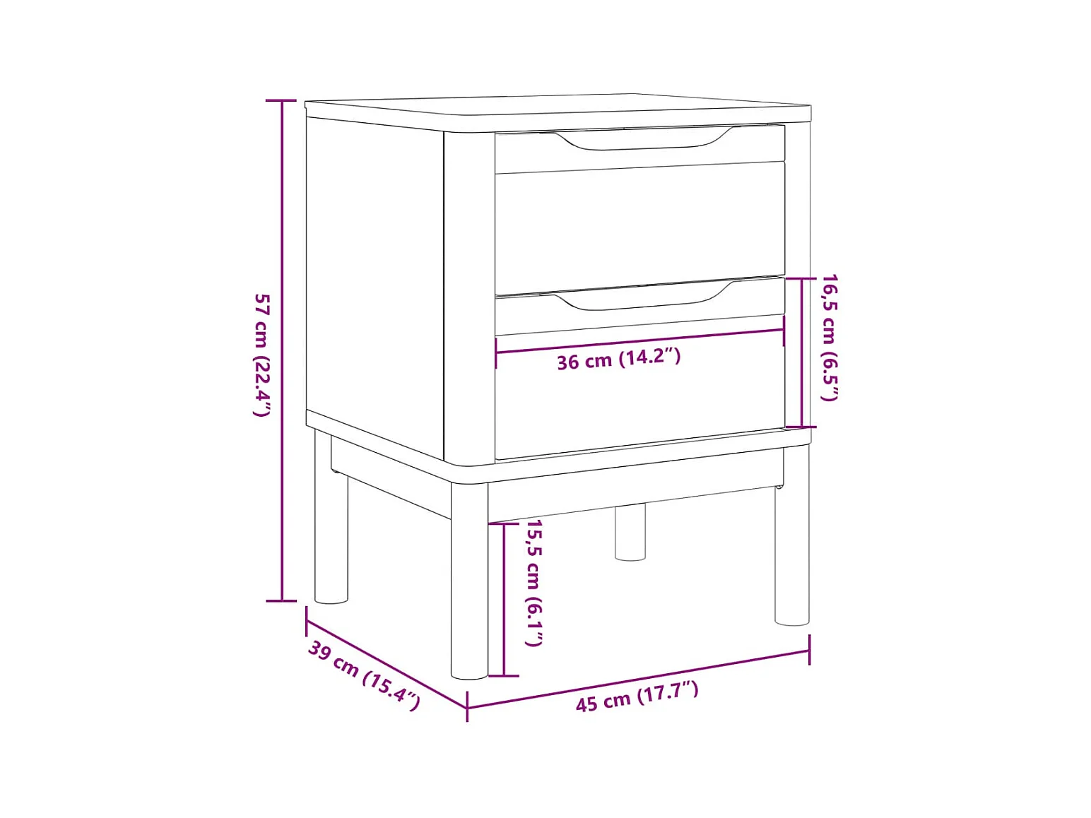 Table de chevet FLORO blanc 45x39x57 cm bois de pin massif