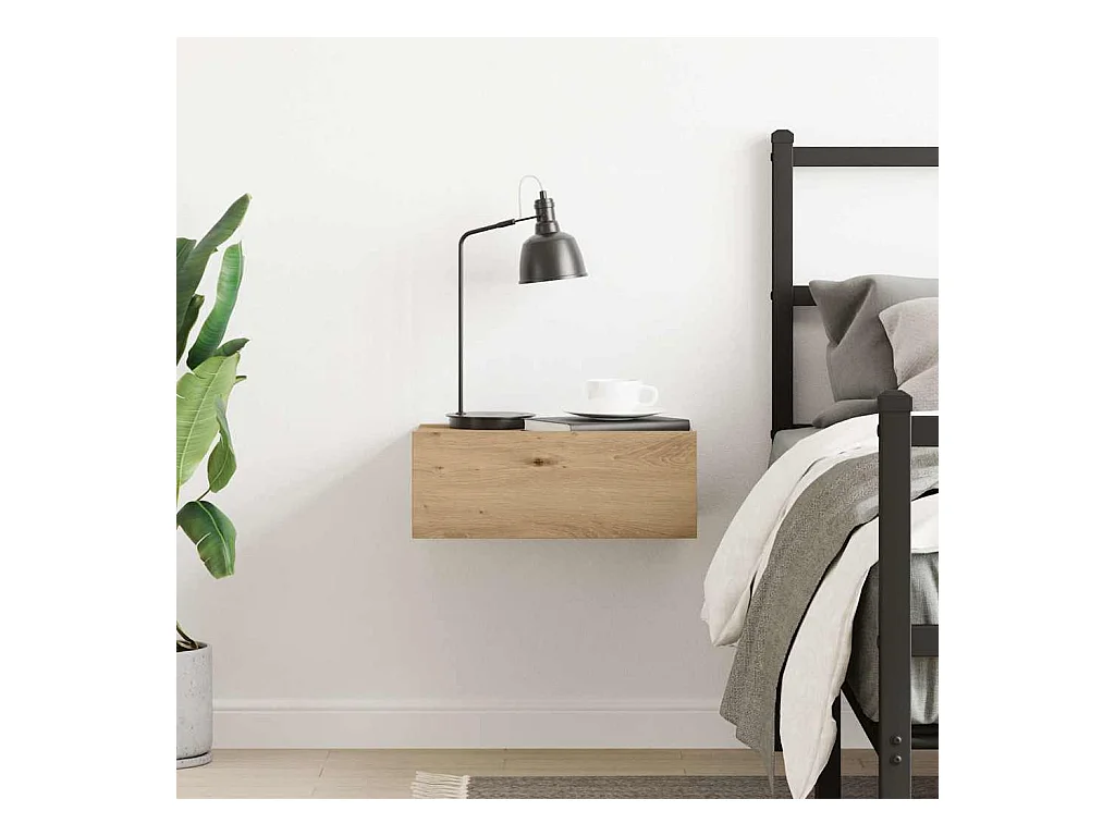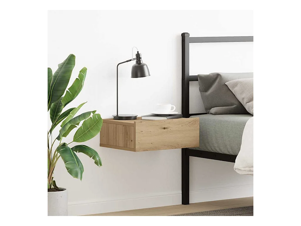 Table de chevet flottante chêne artisanal bois d'ingénierie
