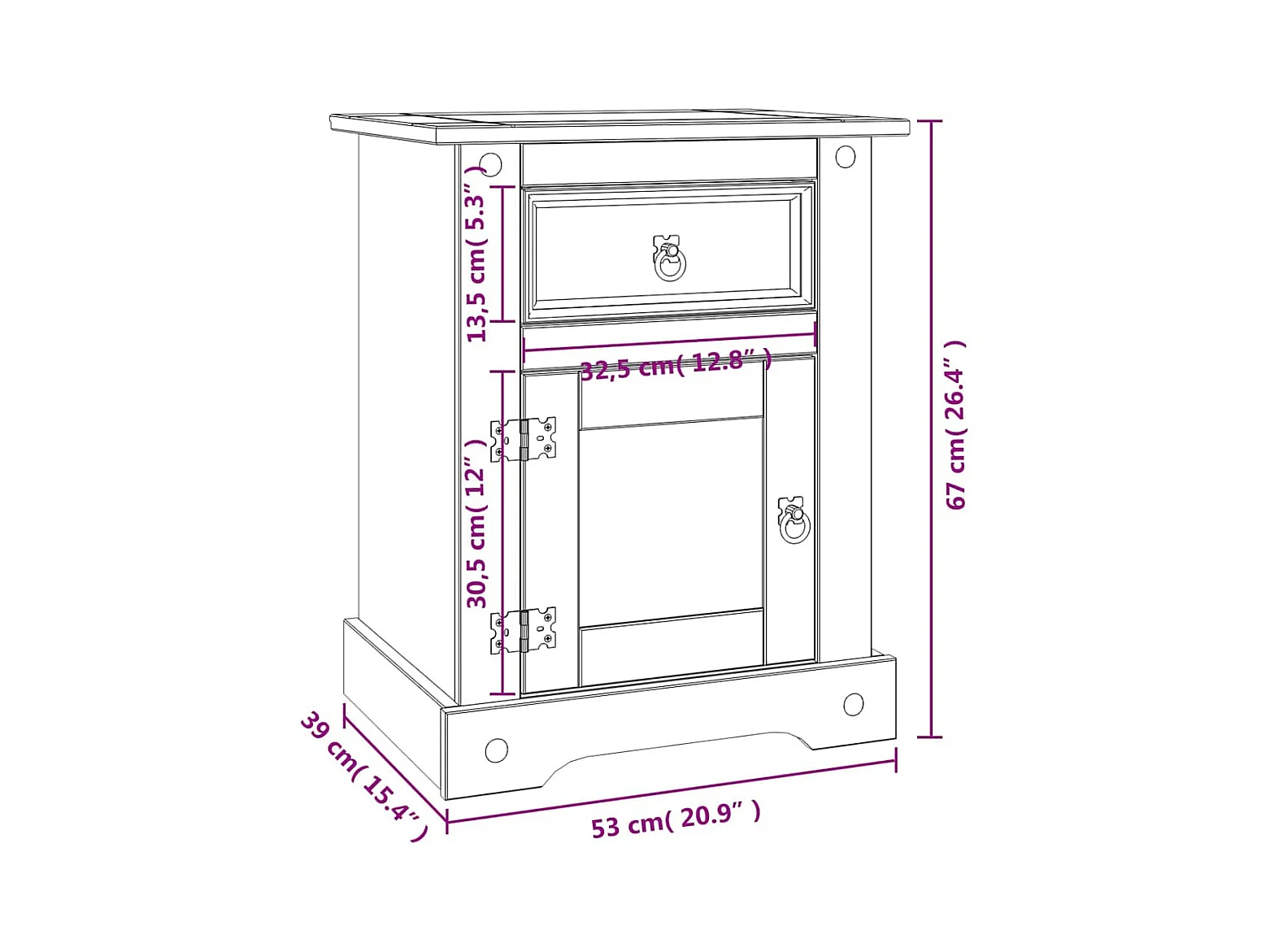 Table de chevet Gamme Corona pin mexicain Gris 53x39x67 cm