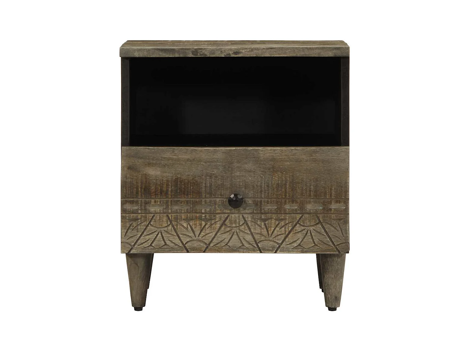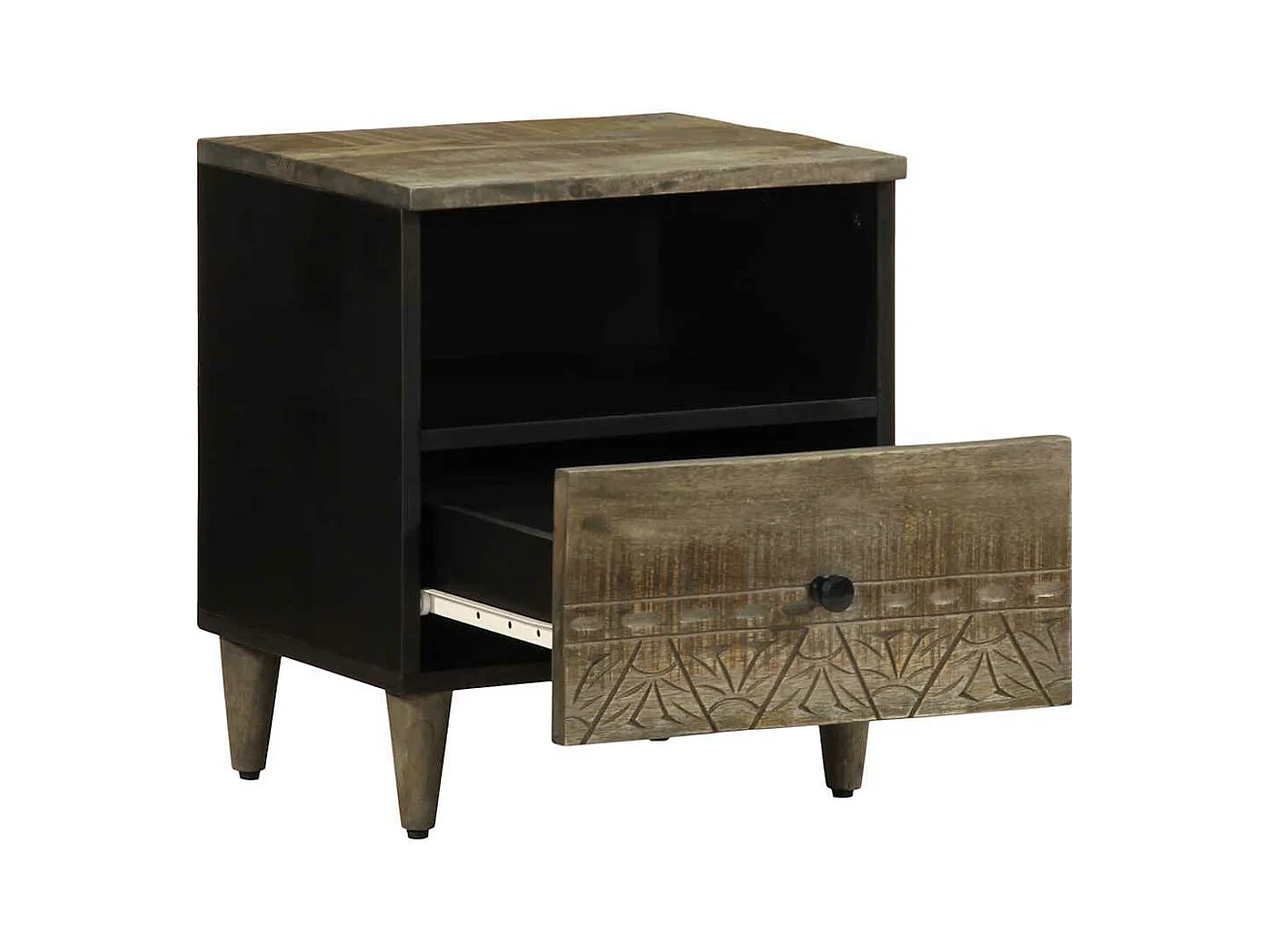 Table de chevet gris clair 40x33x46 cm bois de manguier solide