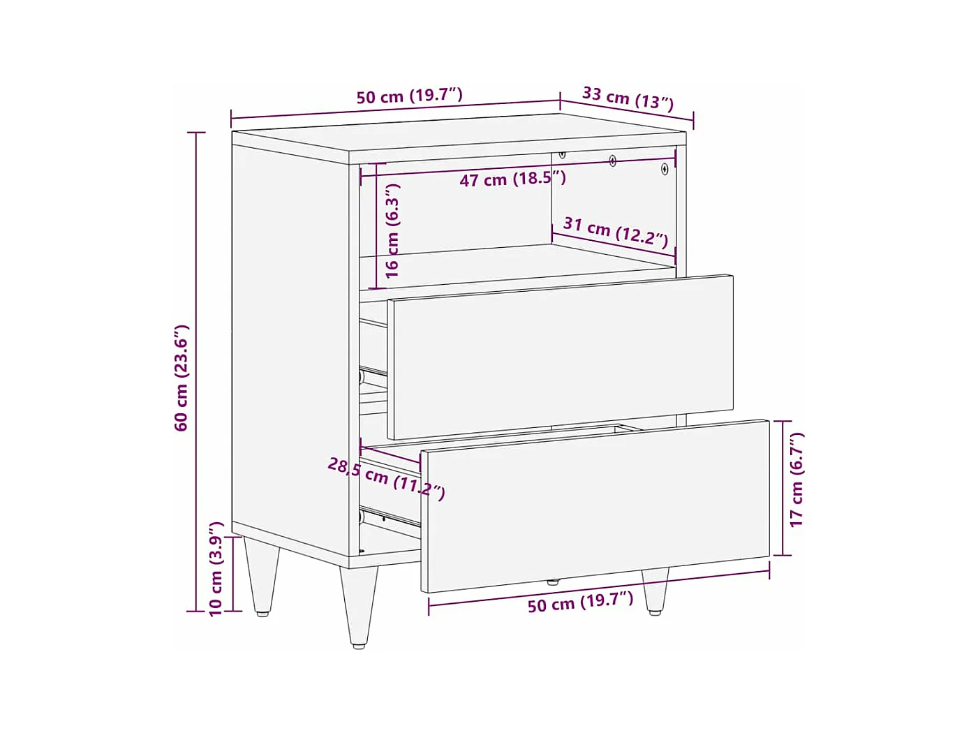 Table de chevet gris clair 50x33x60 cm bois de manguier massif