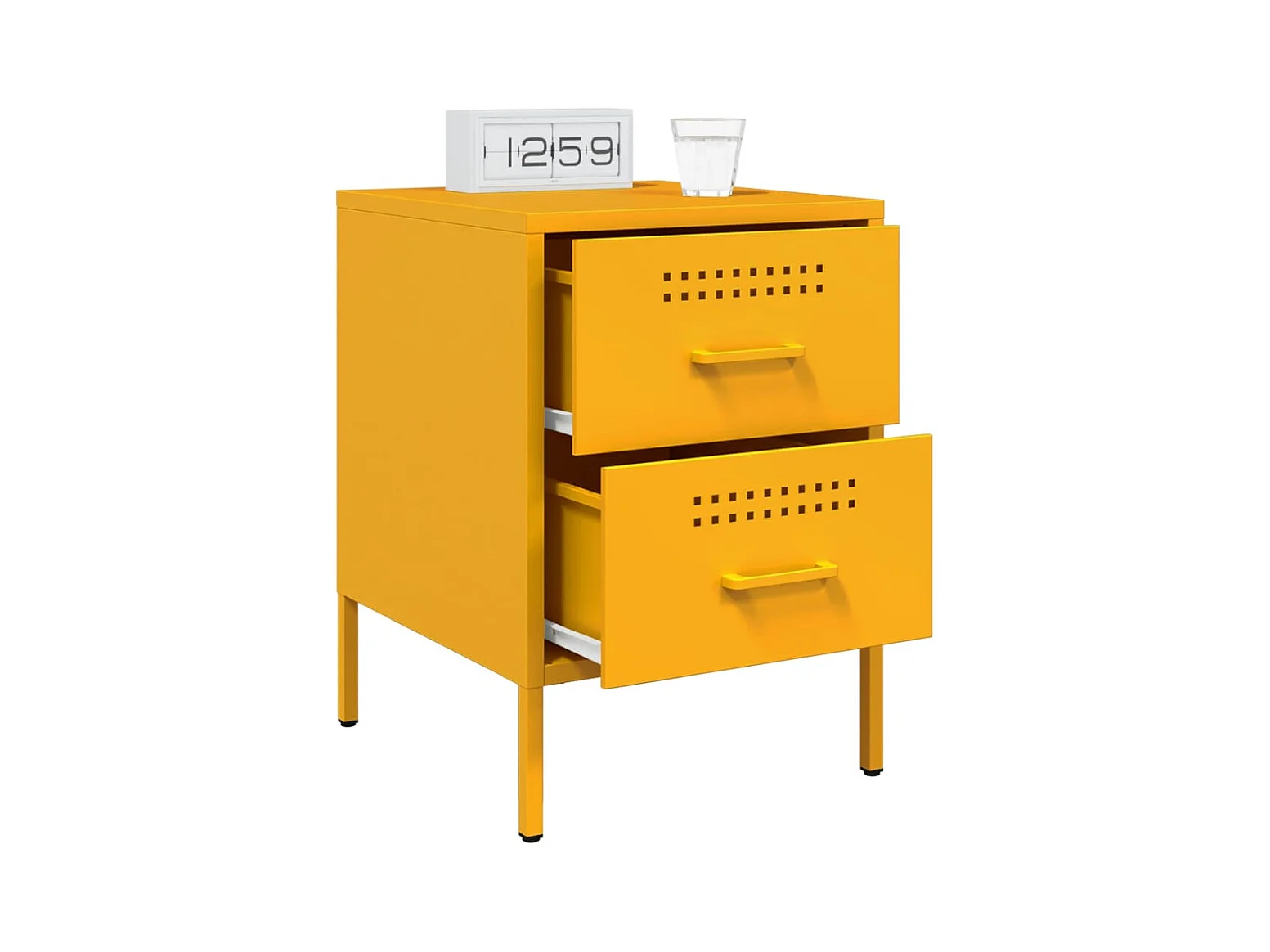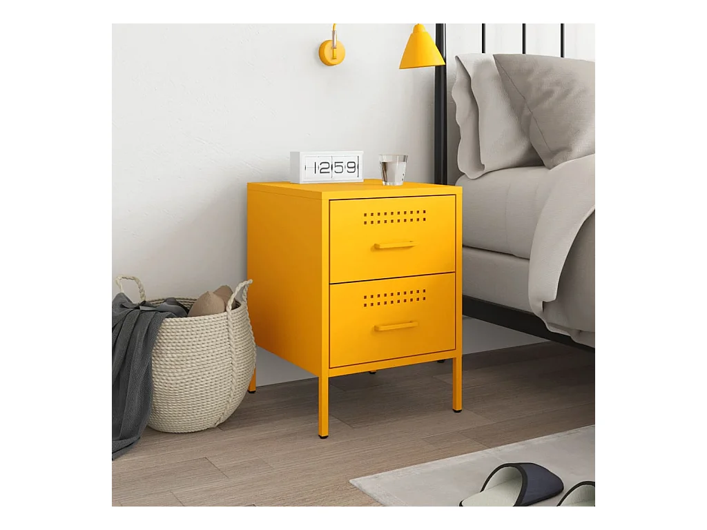Table de chevet jaune moutarde 36x39x68 cm acier laminé à froid