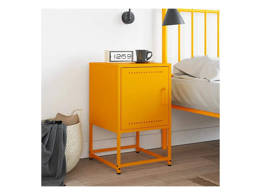 Table de chevet jaune moutarde 36x39x68 cm acier laminé à froid