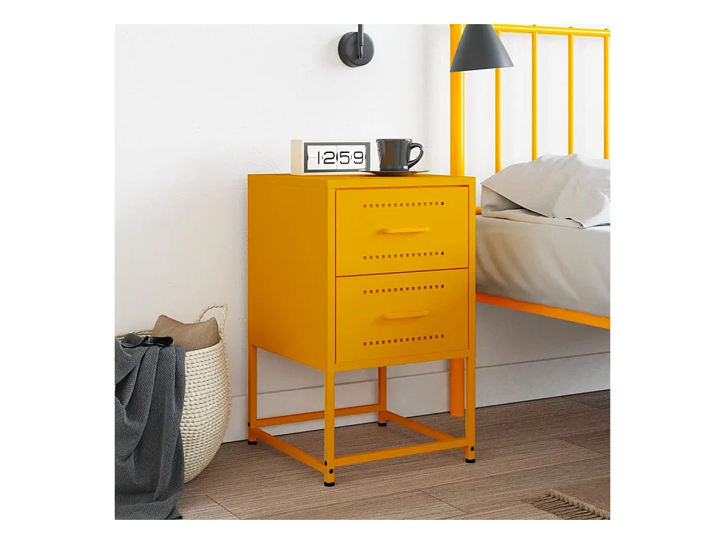 Table de chevet jaune moutarde 36x39x78 cm acier