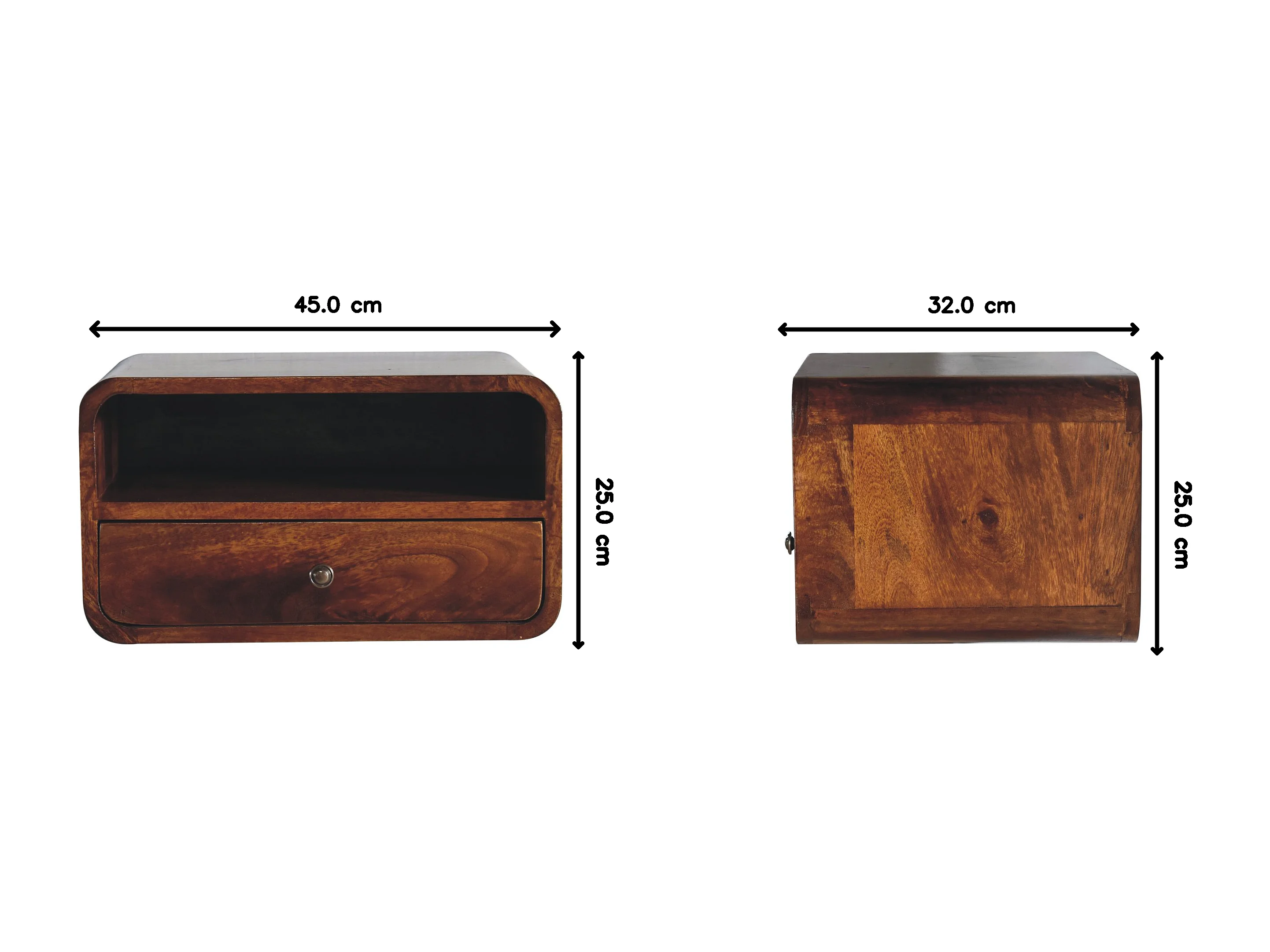 Artisan Furniture Solid Wood Table de chevet Large Chestnut Curve Upper Slot Floating