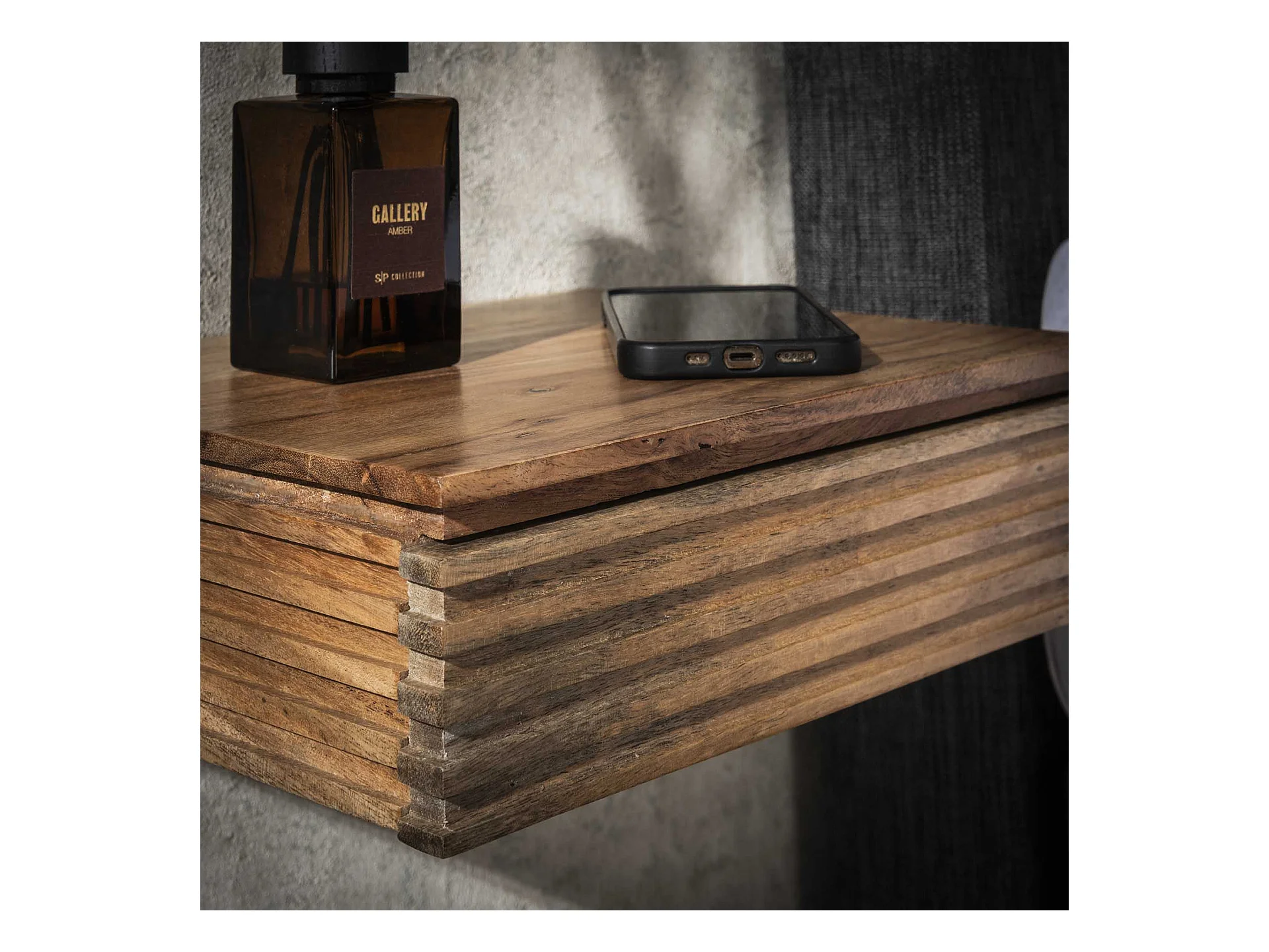 Table de chevet XS suspendue à plat - Acacia massif naturel - Lot de 2