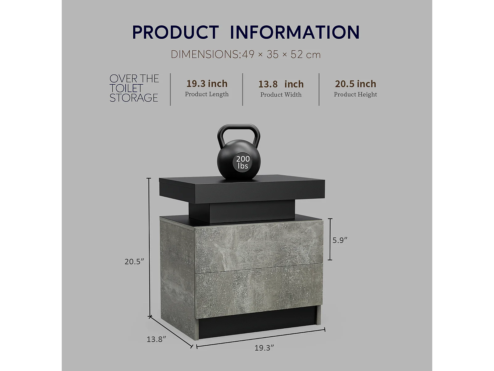 Table de chevet LED avec 2 tiroirs, plateau en acrylique, éclairage RGB, MDF, gris (50x53x36cm)