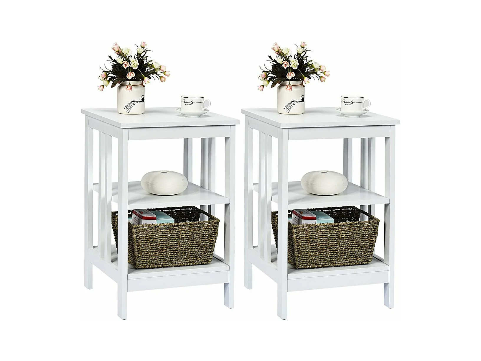 Lot de 2 Table de Chevet à 3 Niveaux, Table d'Appoint Chevet, Table Basse Simple et Contemporain, pour Chambre, Salon 40x40x61cm, Blanc