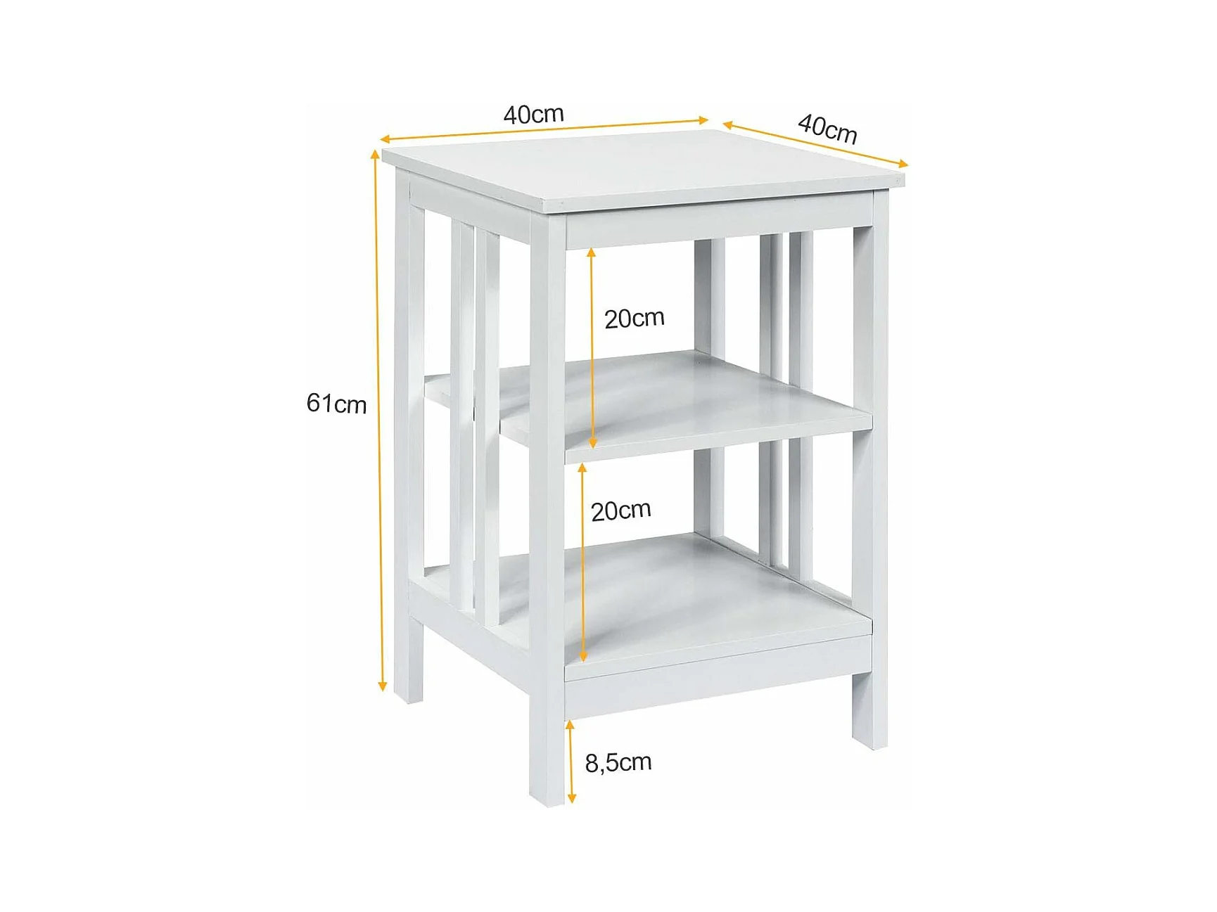 Table d'Appoint, Table de Chevet 2 Niveaux, Bout de Canapé Carré avec Patins Antidérapants pour Chambre, Salon, 40 x 40 x 60 cm, Blanc
