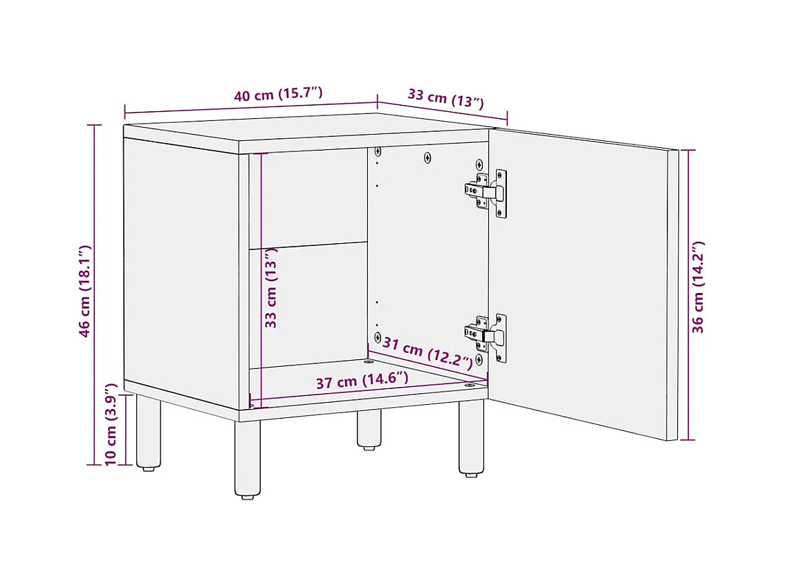 Table de chevet marron 40x33x46 cm bois de manguier solide
