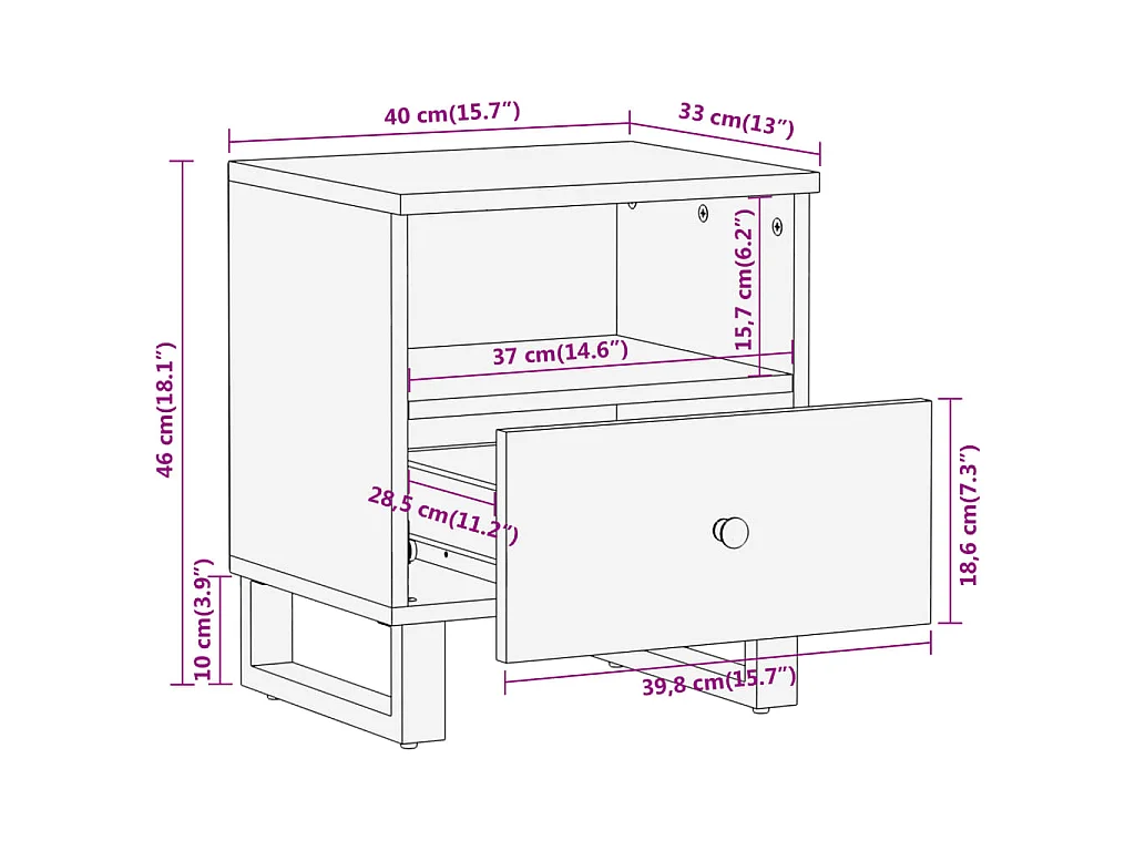 Table de chevet marron et noir bois de manguier solide