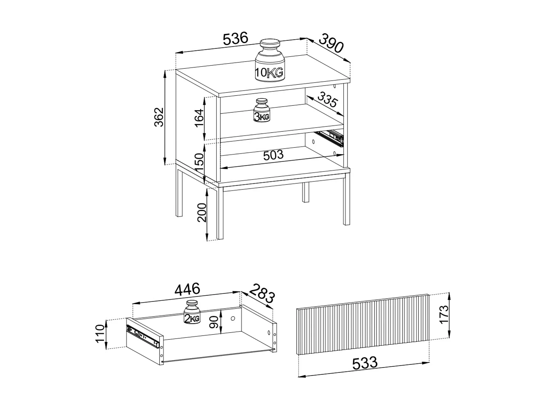 Table de chevet moderne à façade cannelée, 54x56x39 cm, Cachemire / Or