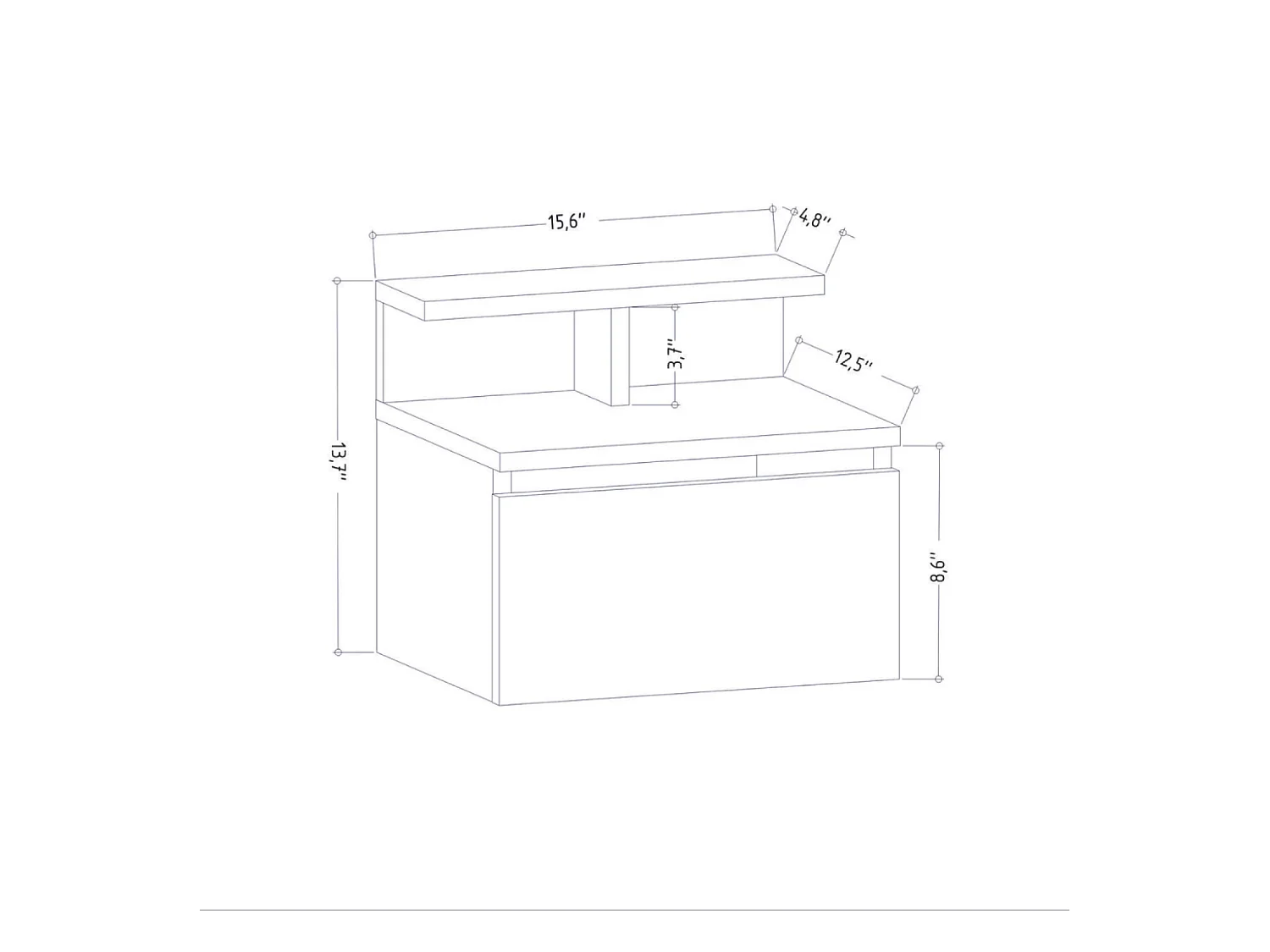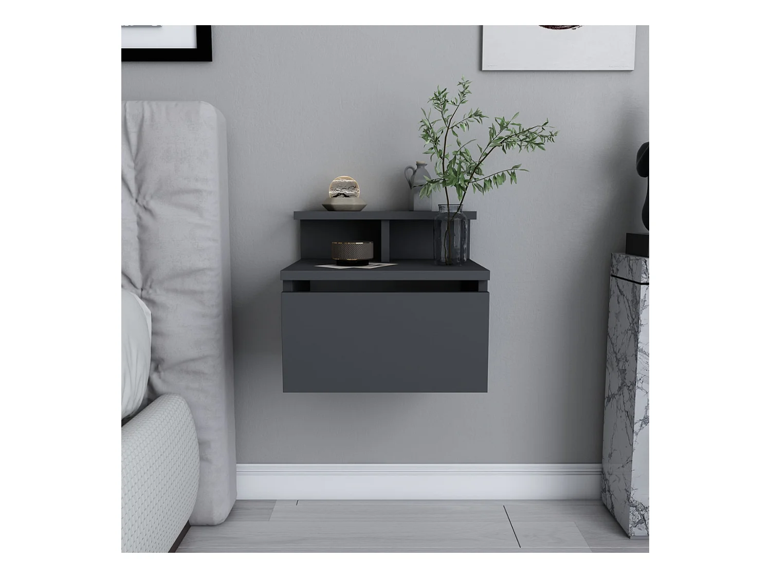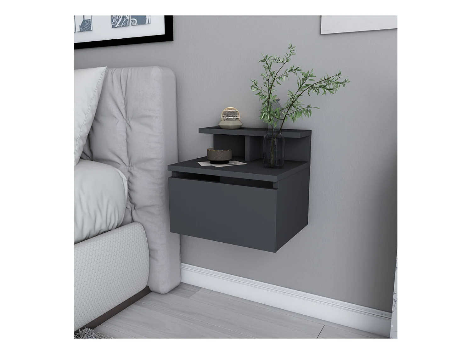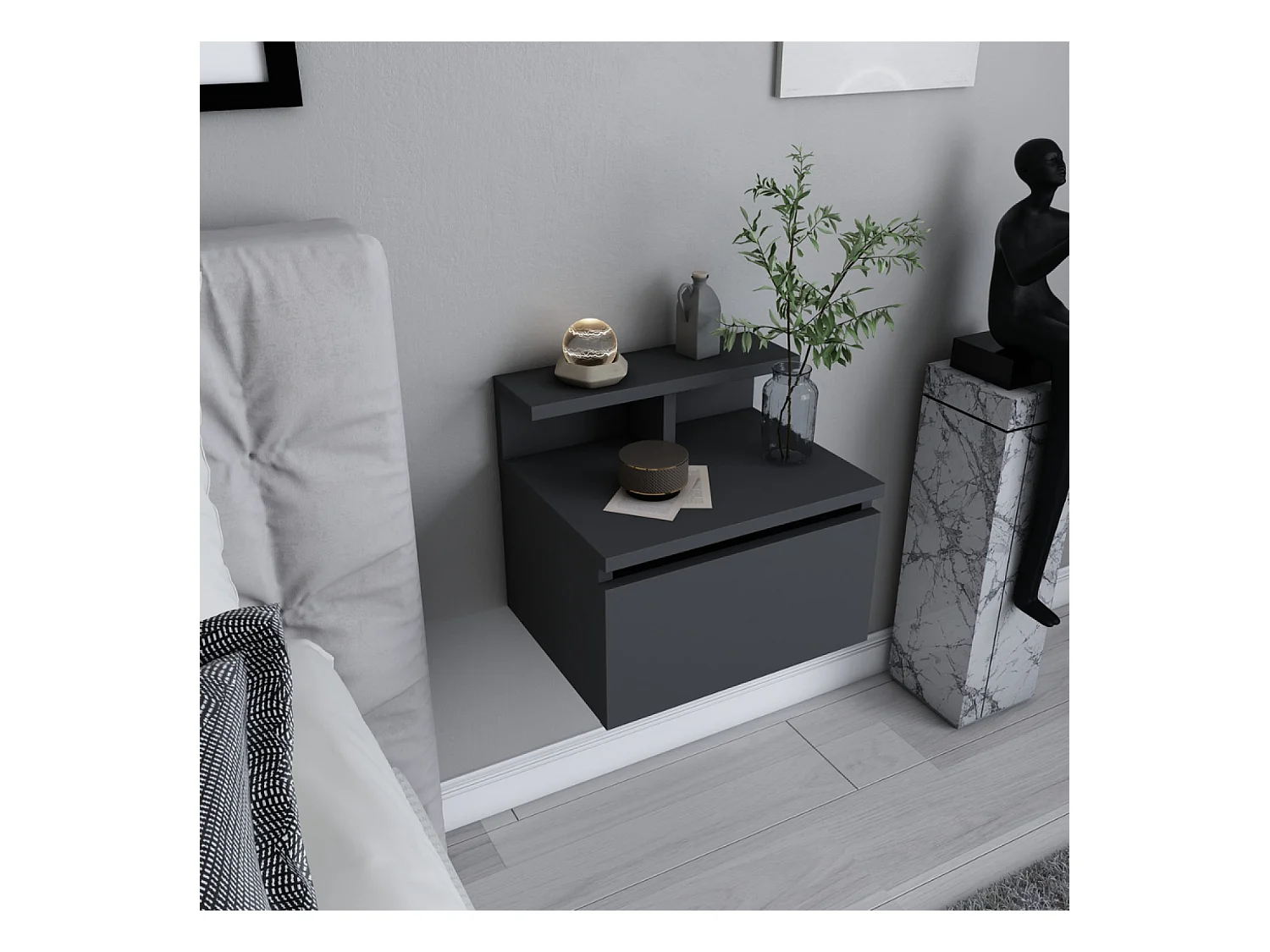 Table de chevet murale anthracite avec tiroir et étagère VISBY