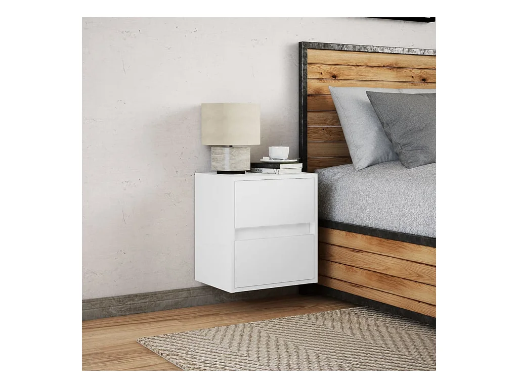 Armoires de chevet et lumières LED 2pcs blanc bois d'ingénierie
