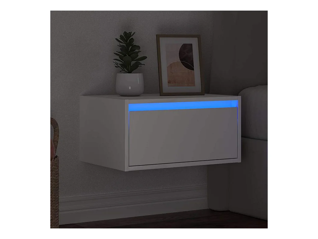 Tables de chevet murales avec lumières LED 2 pièces blanc