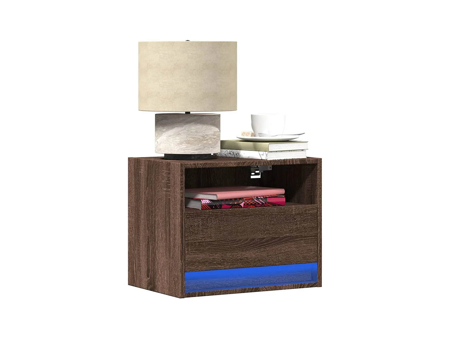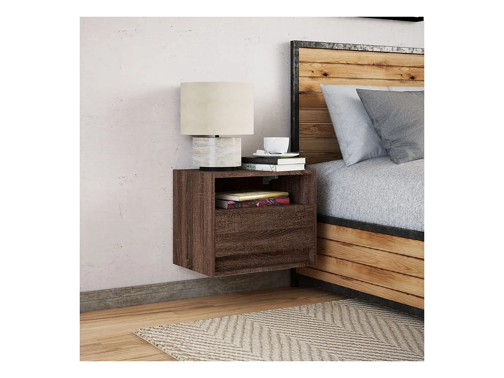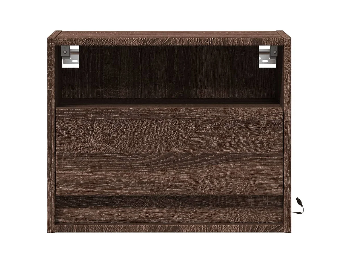 Table de chevet murale avec lumières LED chêne marron