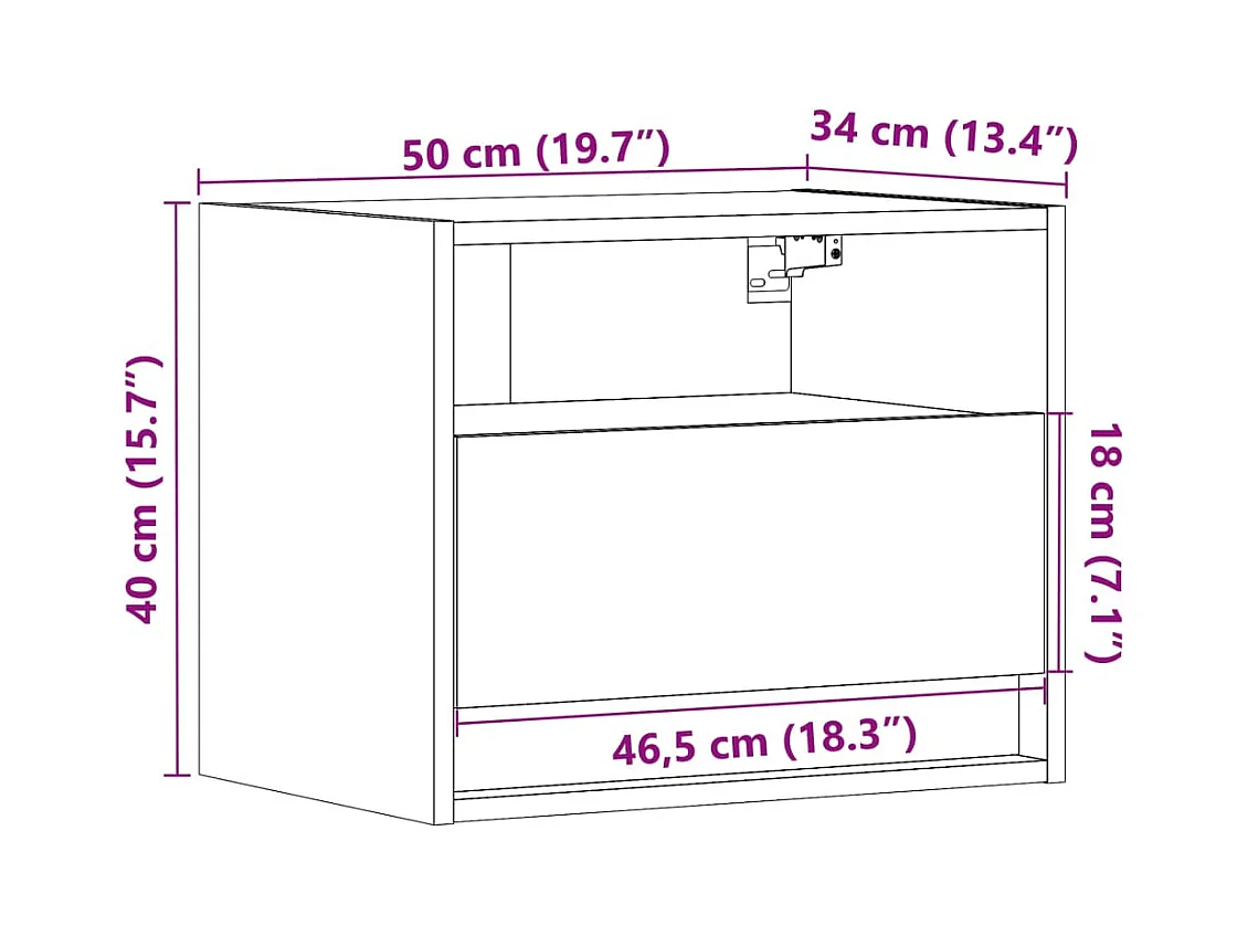 Table de chevet murale avec lumières LED chêne sonoma