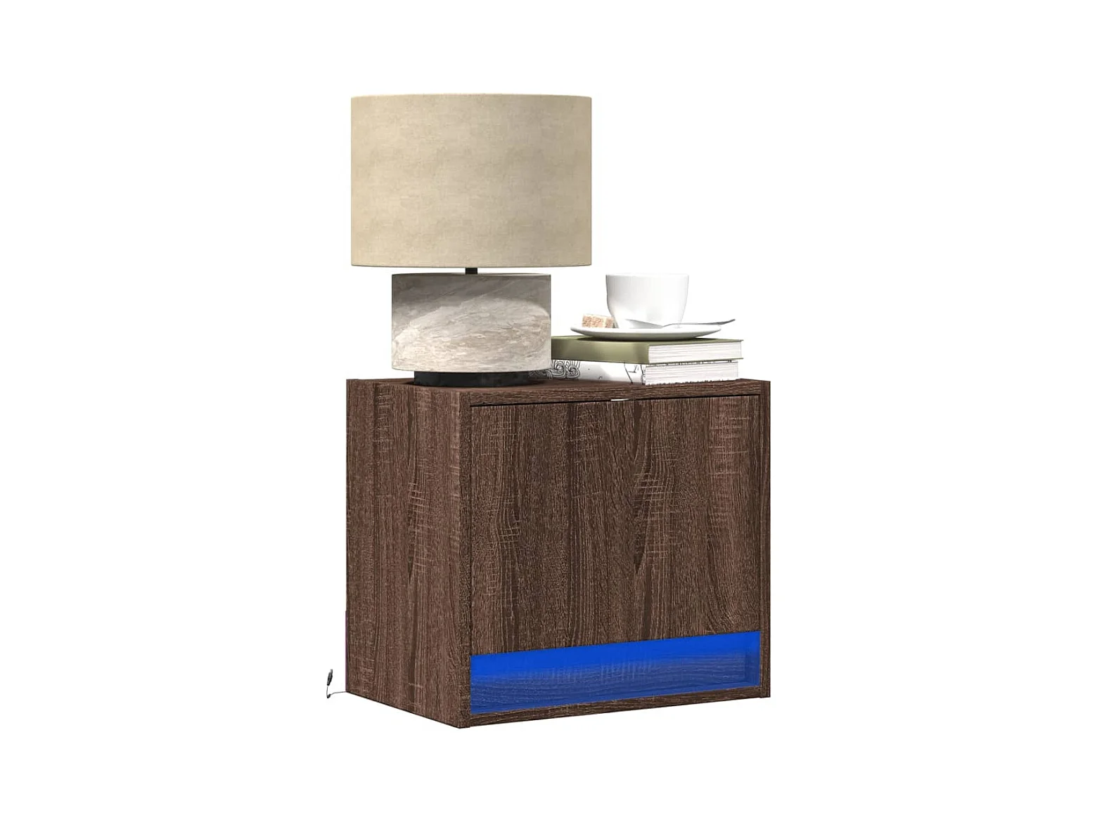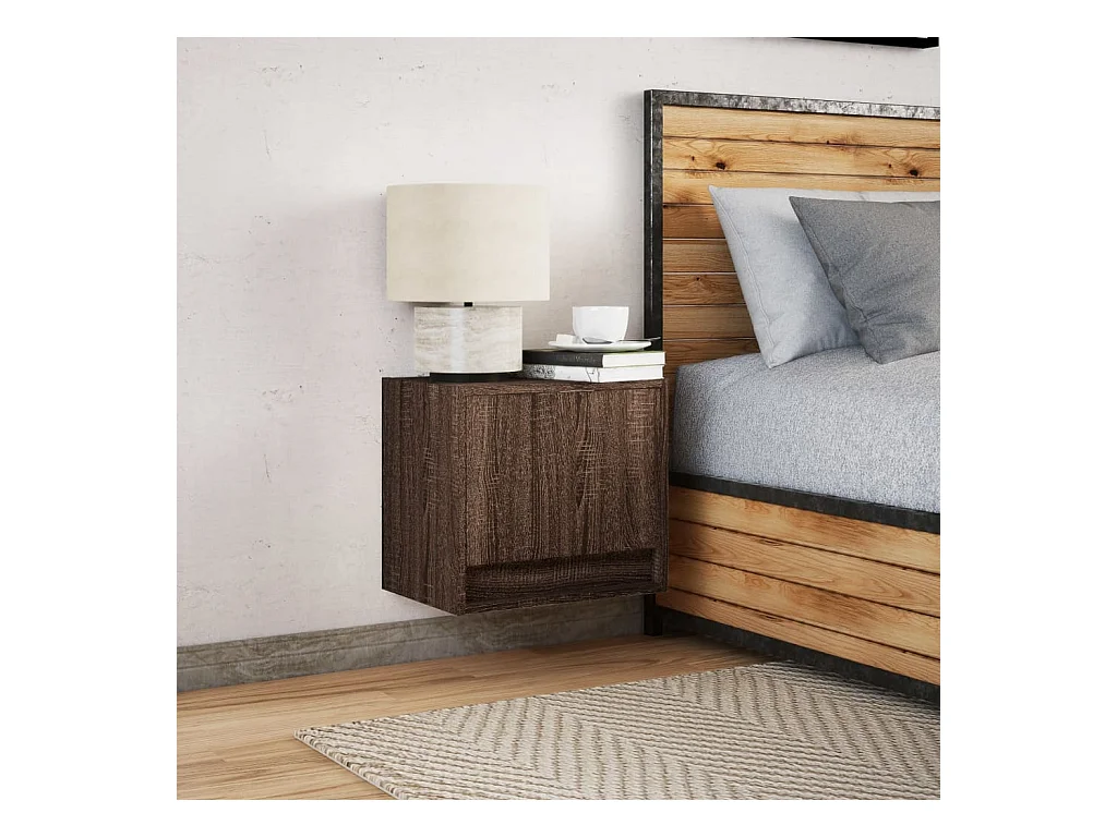 Table de chevet murale avec lumières LED chêne marron