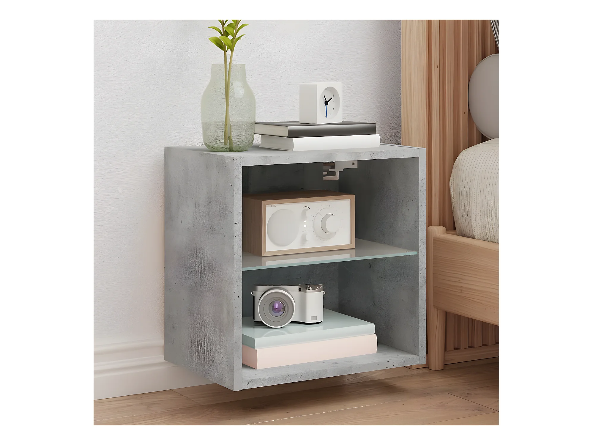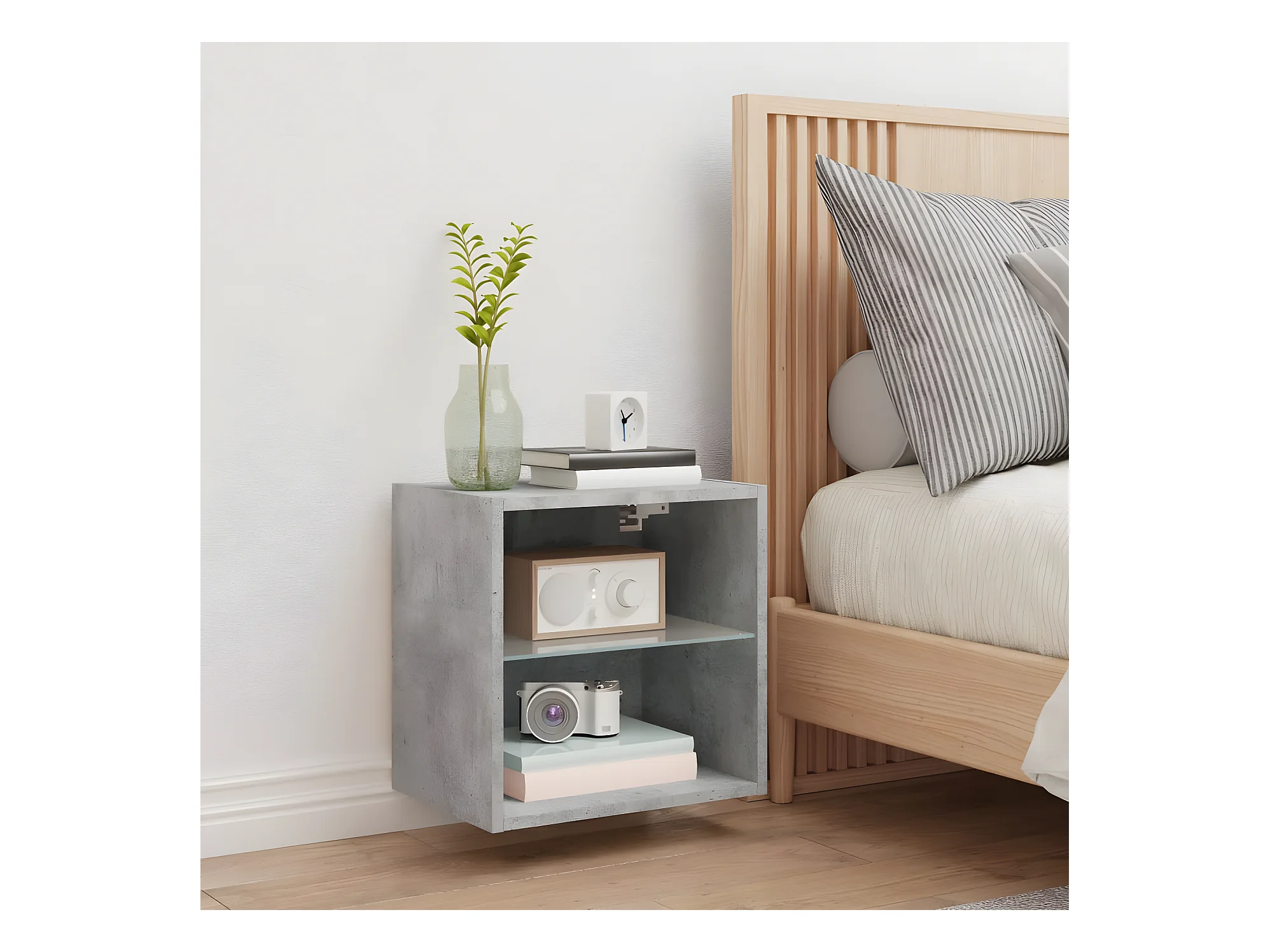 Table de chevet avec lumières LED gris béton 40x39x48,5 cm FR37429