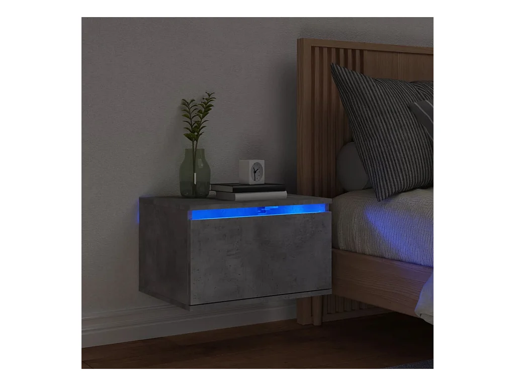 Table de chevet murale avec lumières LED gris béton KEFWE40626