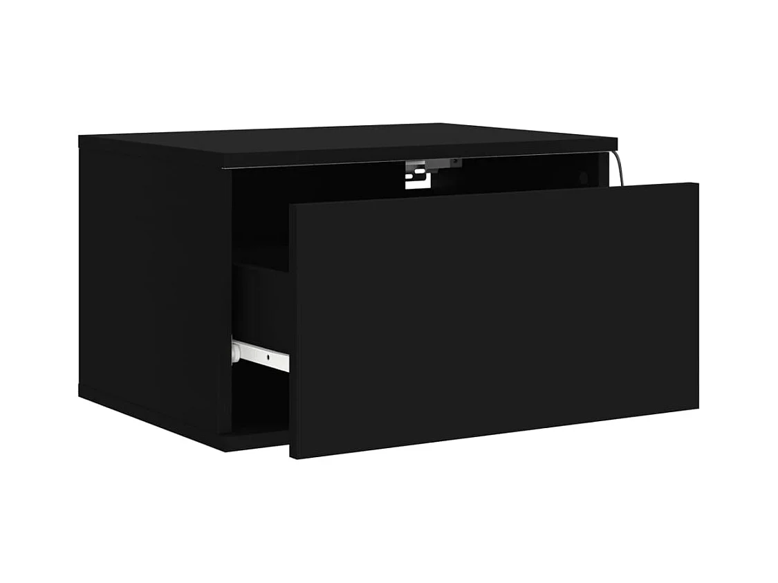 Tables de chevet murales avec lumières LED 2 pièces noir