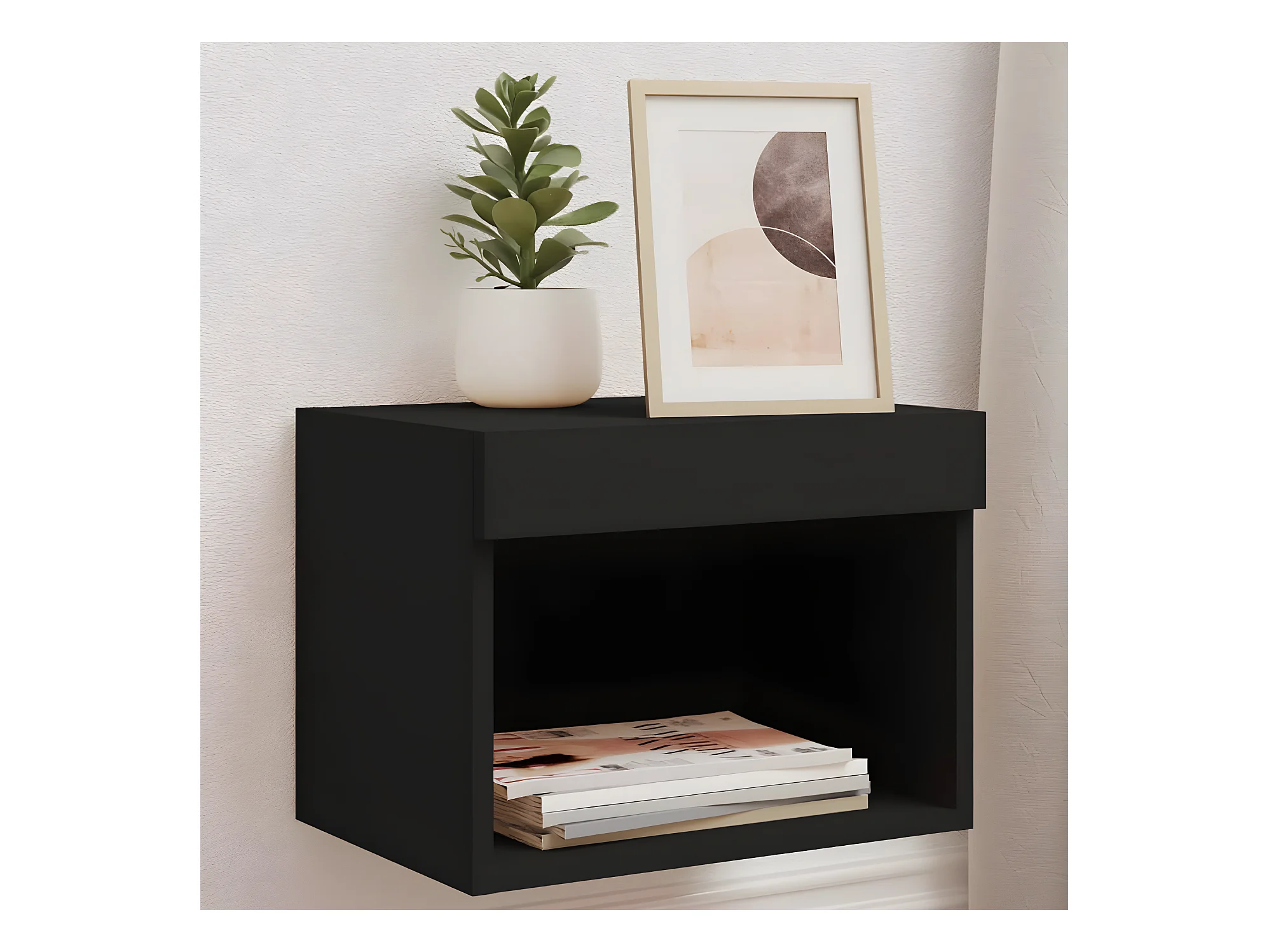 Table de chevet murale avec lumières LED noir KEFWE80409