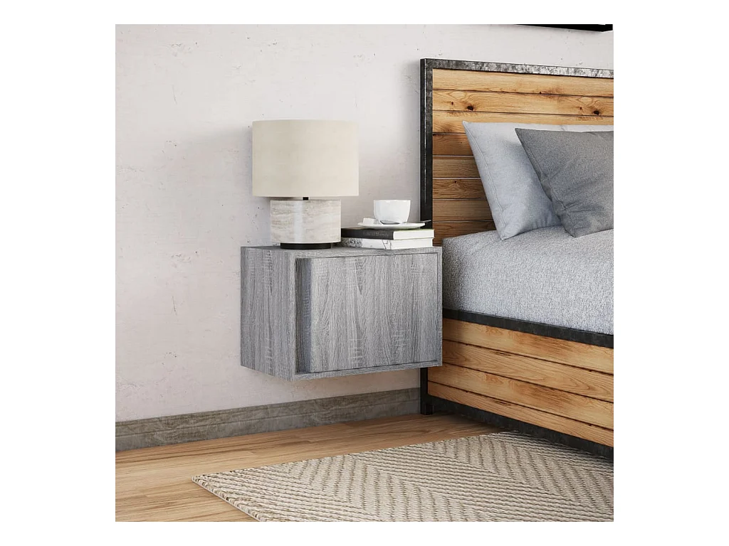 Tables de chevet murales avec lumières LED 2 pcs sonoma gris