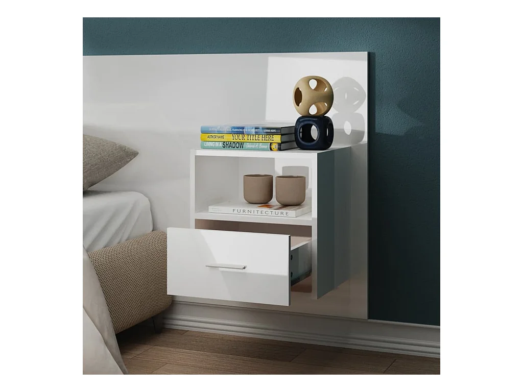 Table de chevet murale blanc brillant 41,5x36x28 cm KEFWE66987