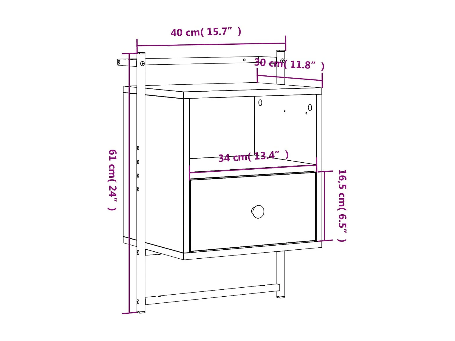 Table de chevet murale chêne brun 40x30x61 cm bois d'ingénierie