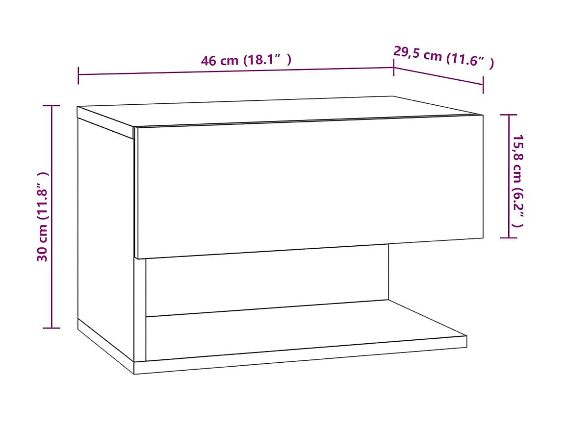 Table de chevet chêne sonoma 30x60x60 cm bois d'ingénierie
