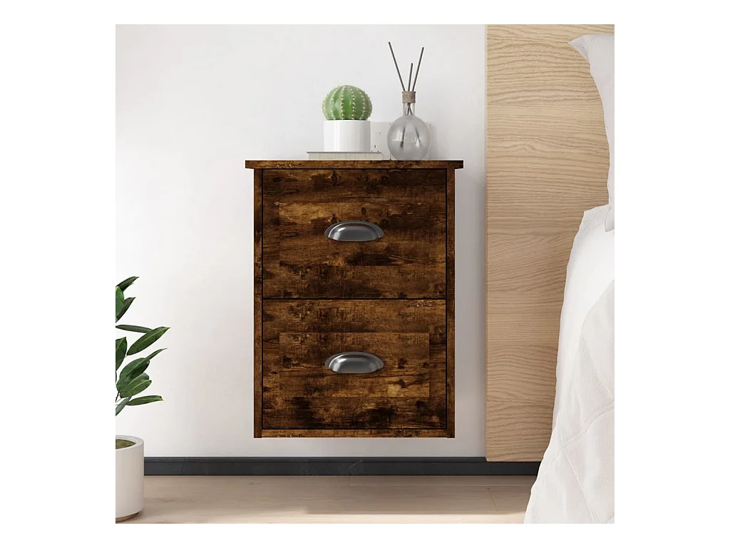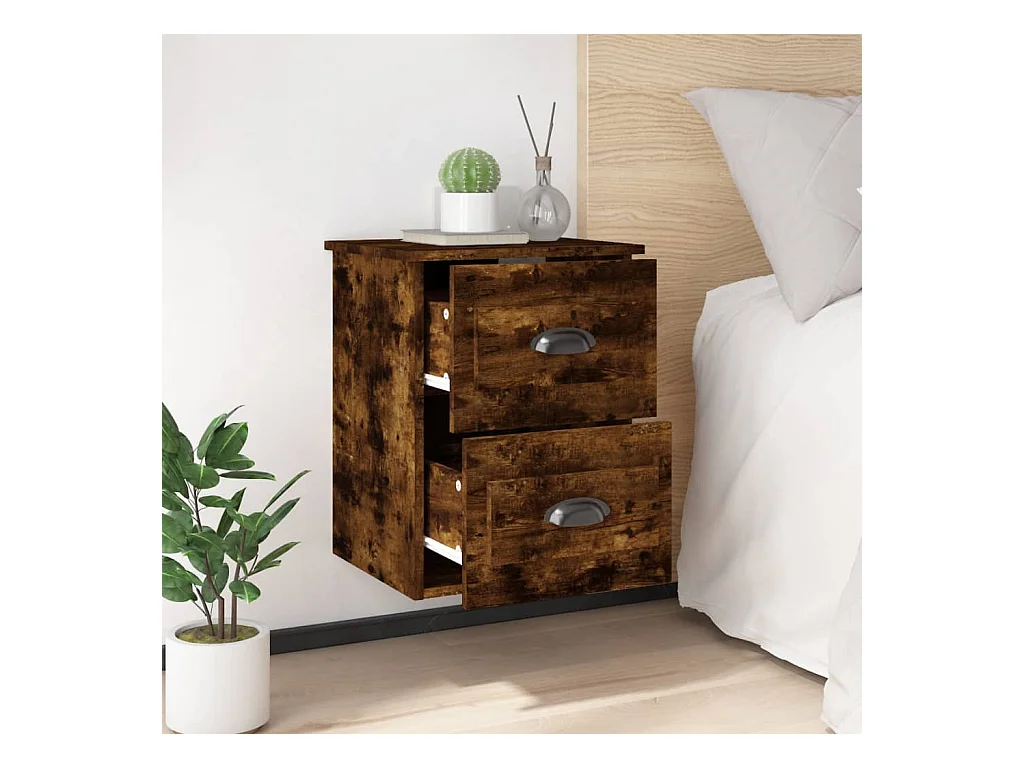 Table de chevet murale chêne fumé 41,5x36x53 cm