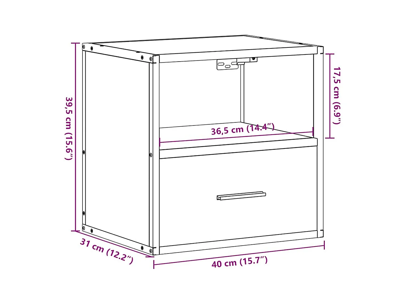 Table de chevet murale chêne sonoma 40x31x39,5 cm