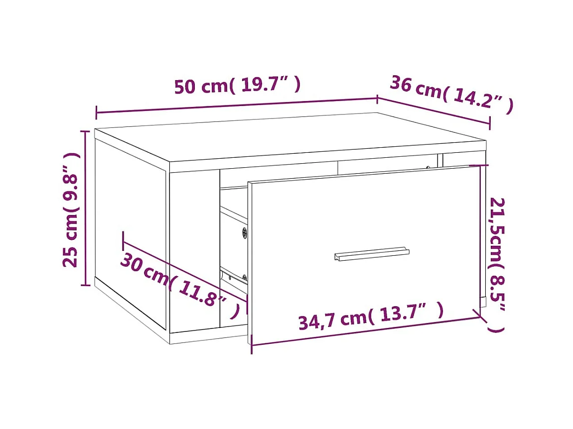 Table de chevet murale Noir 50x36x25 cm