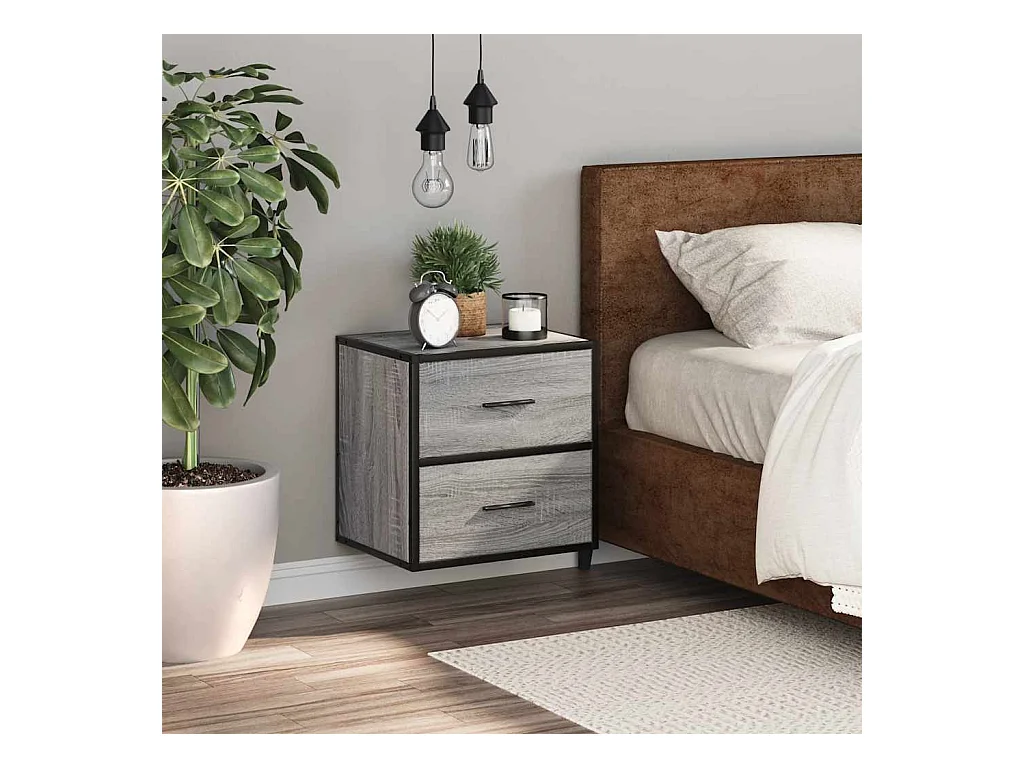 Table de chevet sonoma gris 40x31x50 cm bois d'ingénierie métal
