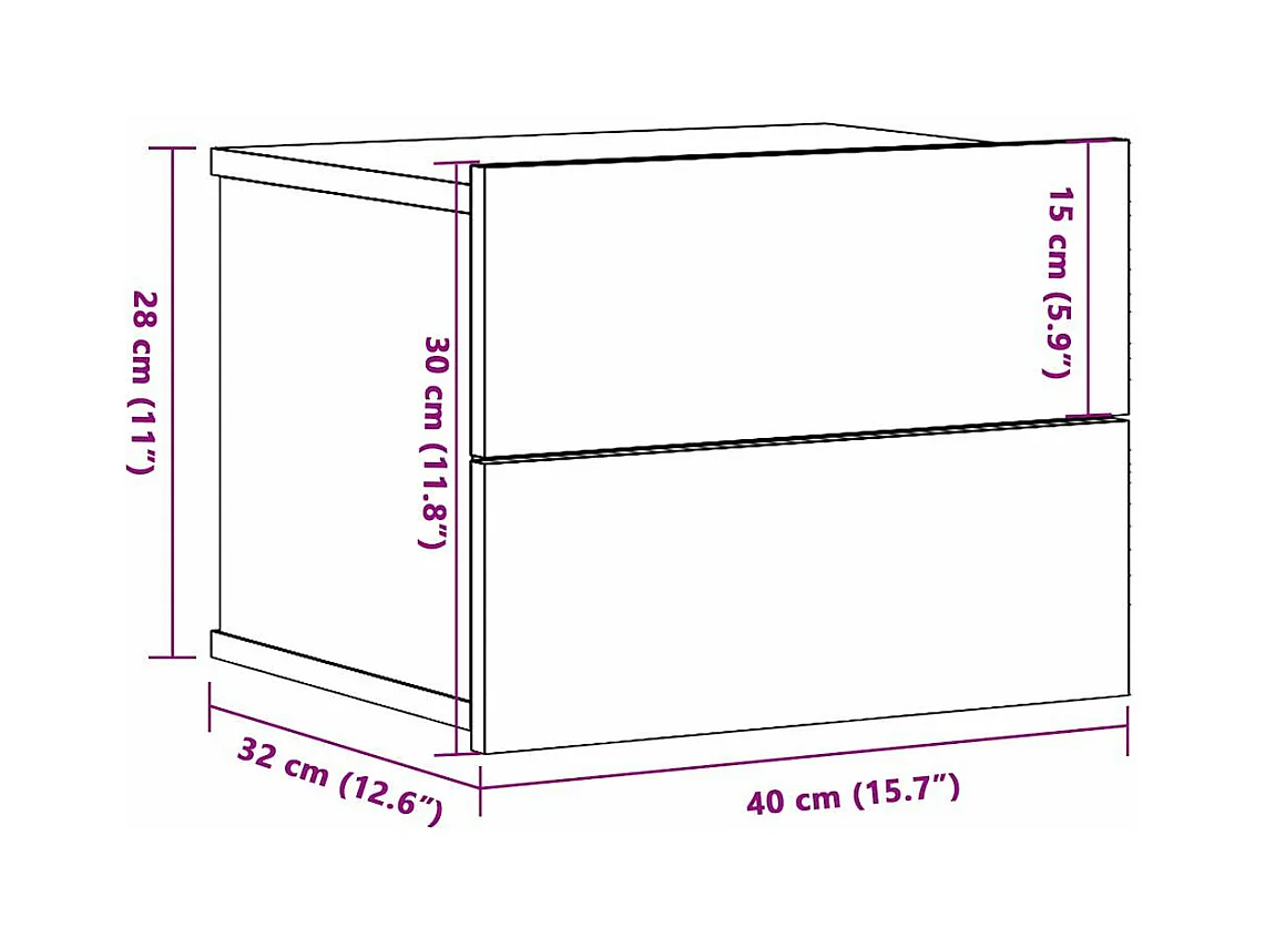 Tables de chevet murales 2 pièces vieux bois 40x32x30 cm