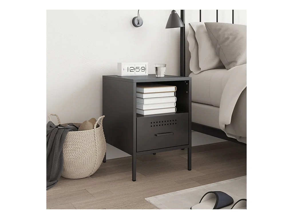 Table de chevet noir 36x39x50,5 cm acier laminé à froid
