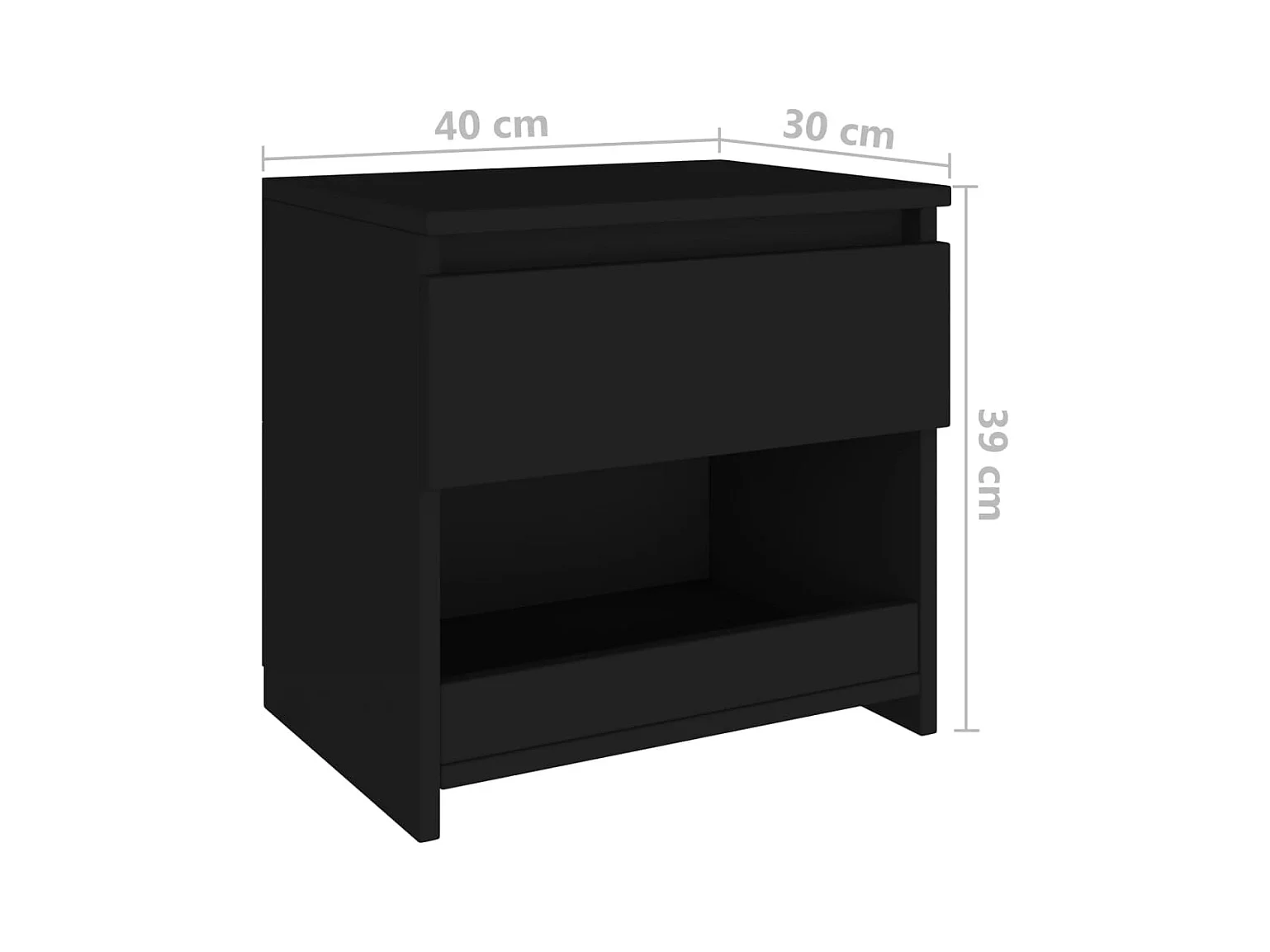 Table de chevet noir 40x30x50 cm bois d’ingénierie