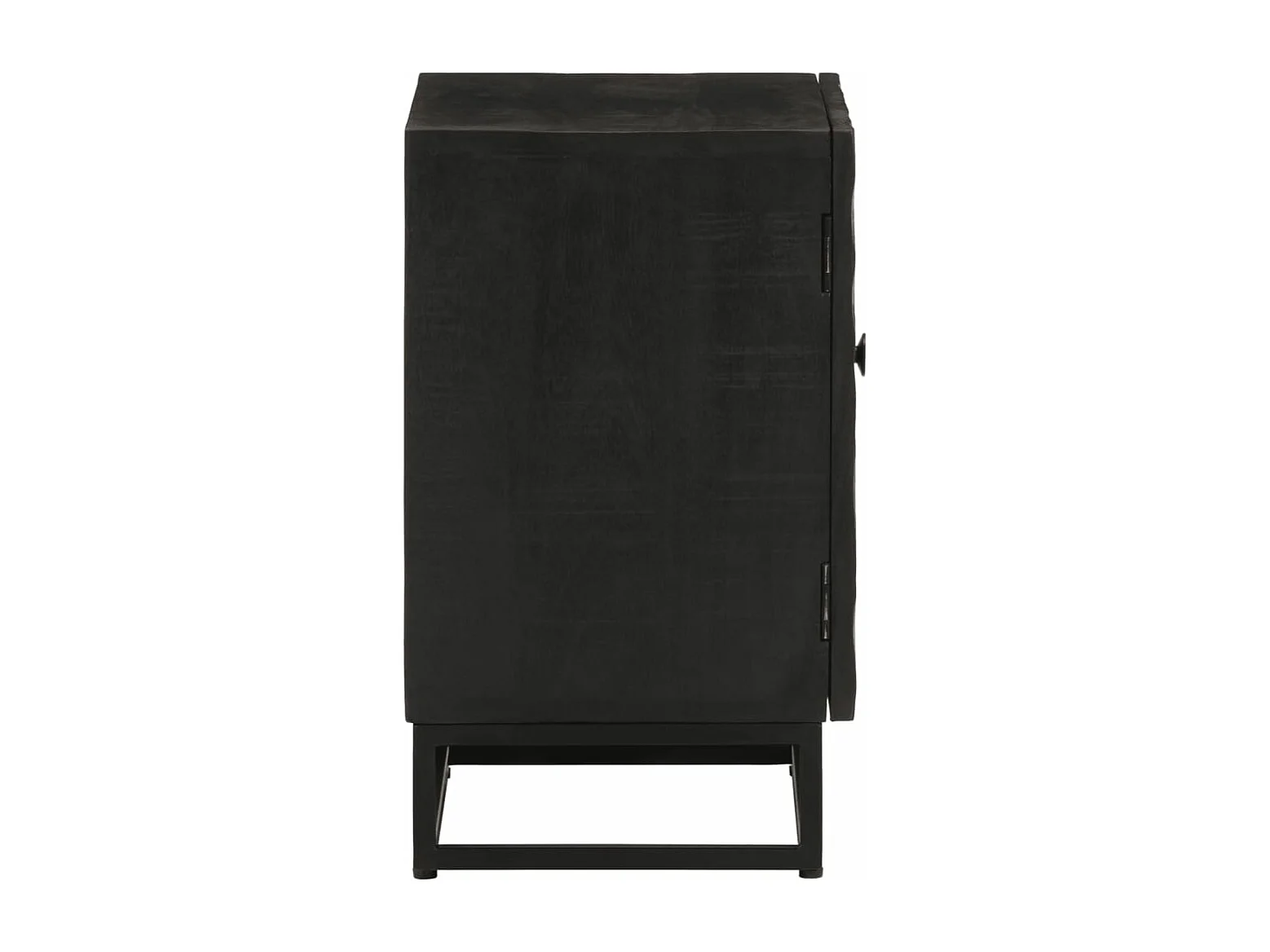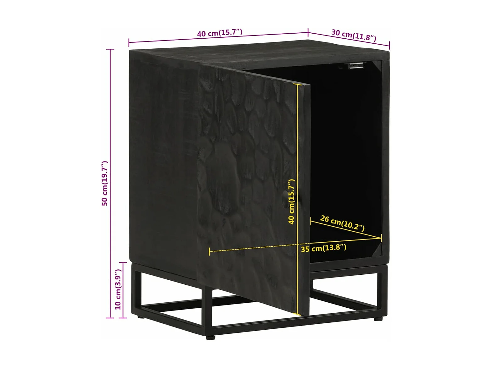 Table de chevet noir 40x30x50 cm bois massif manguier et fer