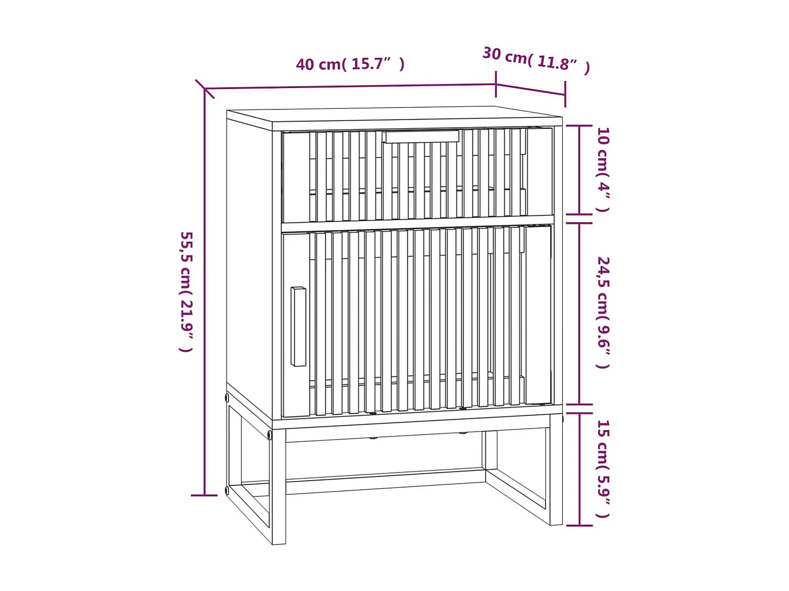 Table de chevet noir 40x30x55,5 cm bois d’ingénierie et fer