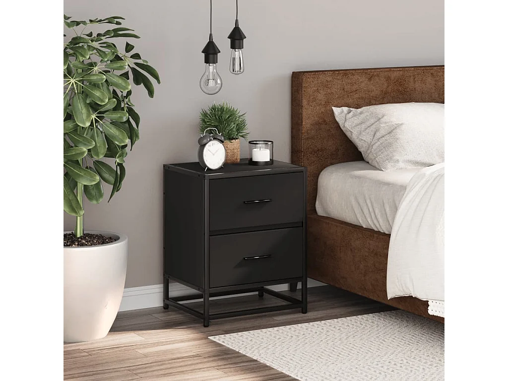 Table de chevet noir 40x31x50 cm bois d'ingénierie et métal