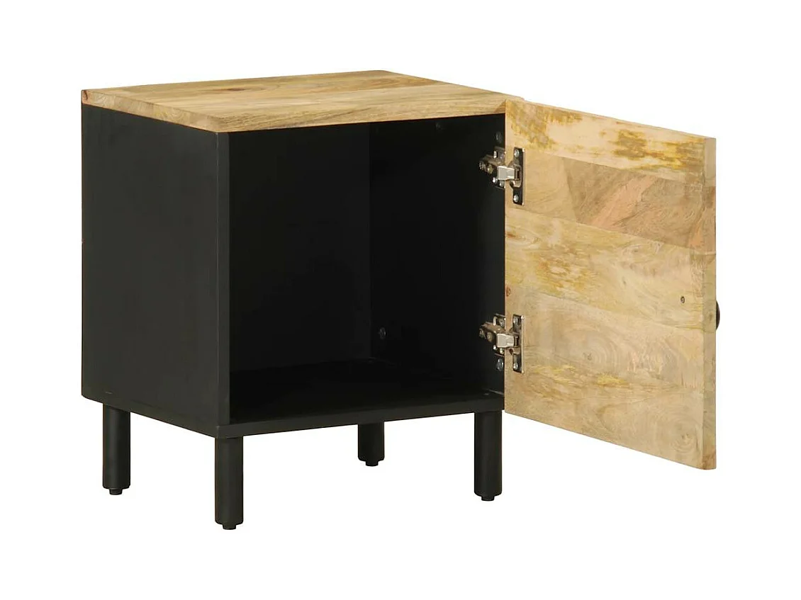 Table de chevet noir 40x33,5x46 cm bois de manguier massif brut