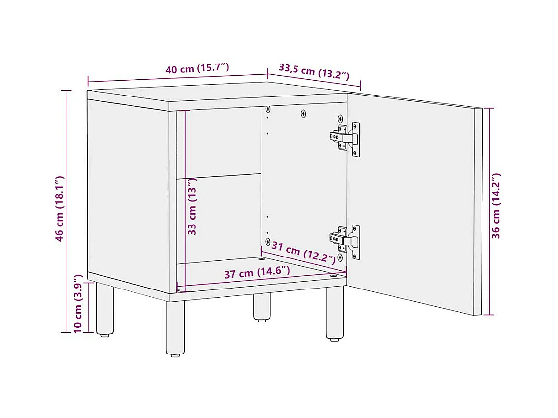 Table de chevet 40x33x46 cm Bois de manguier solide