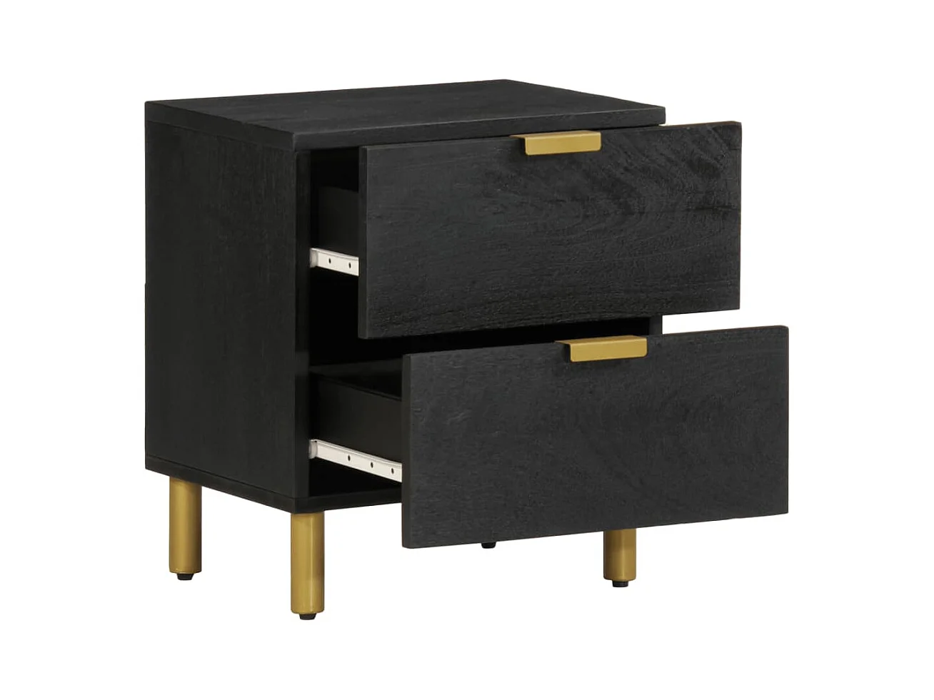 Table de chevet noir 40x33x46 cm bois de manguier solide
