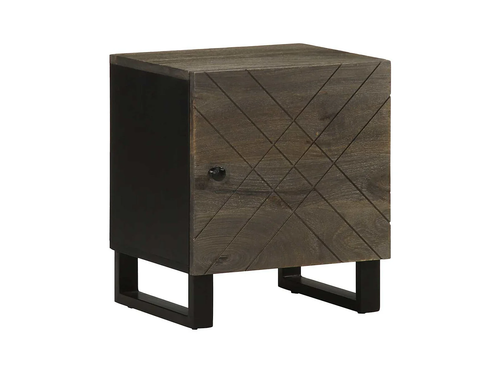 Table de chevet noir 40x33x46 cm bois de manguier massif brut