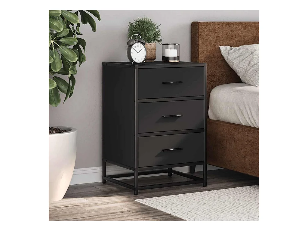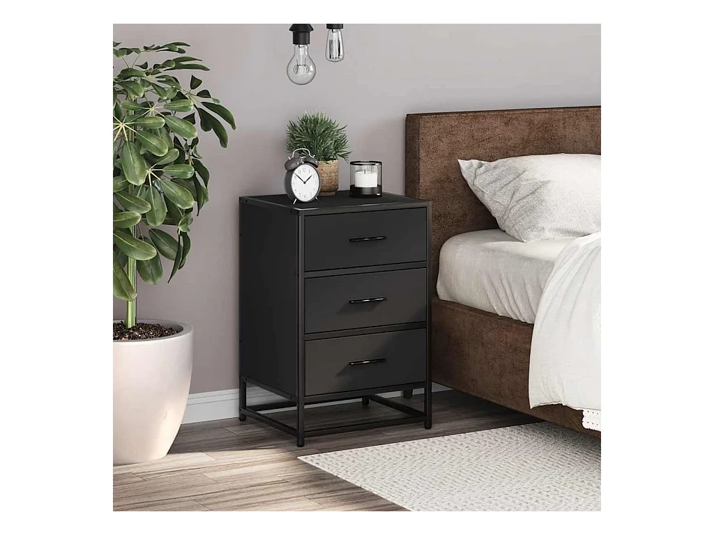 Table de chevet noir 40x34,5x60 cm bois d'ingénierie et métal