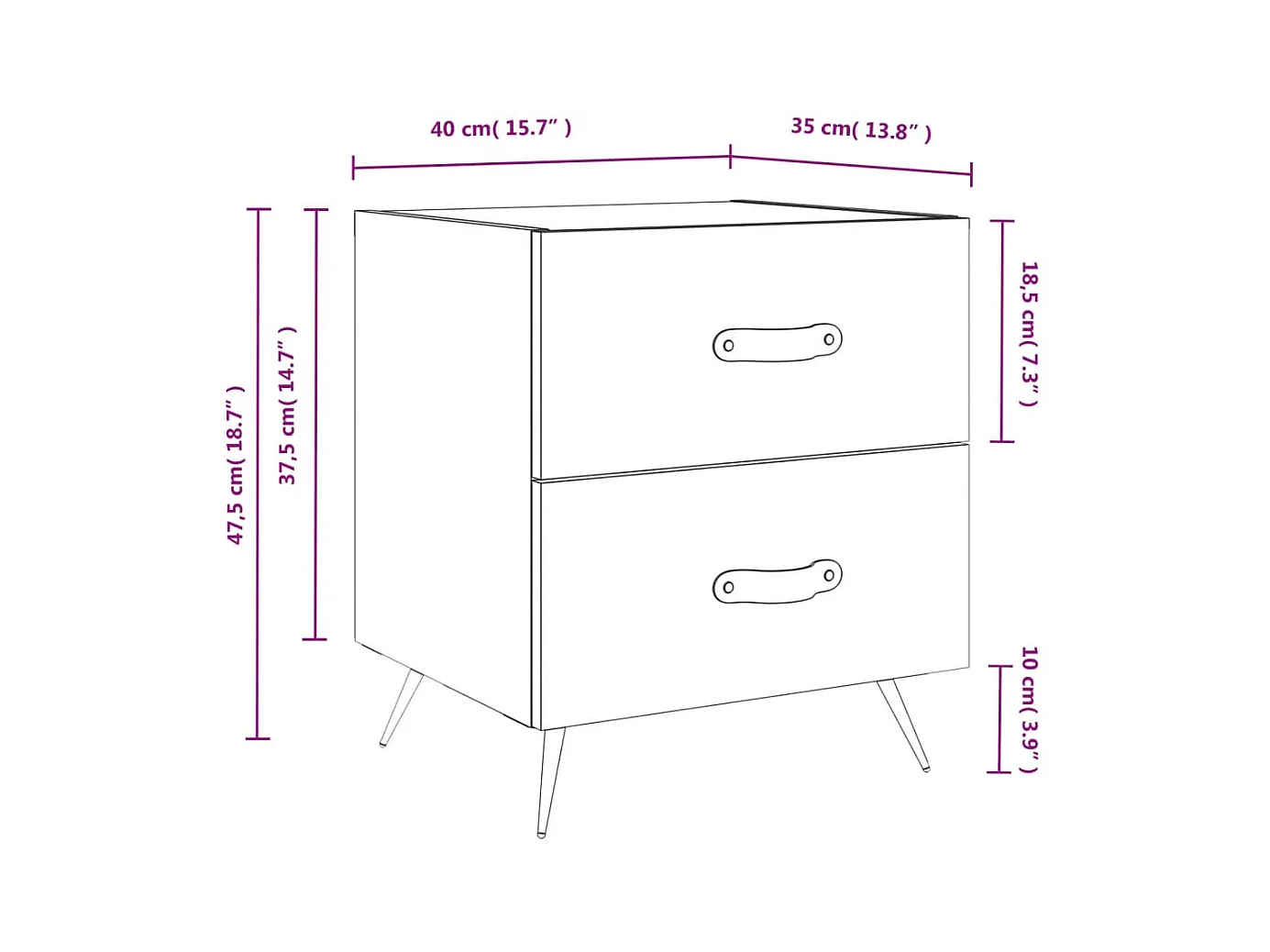 Table de chevet noir 40x35x47,5 cm bois d’ingénierie